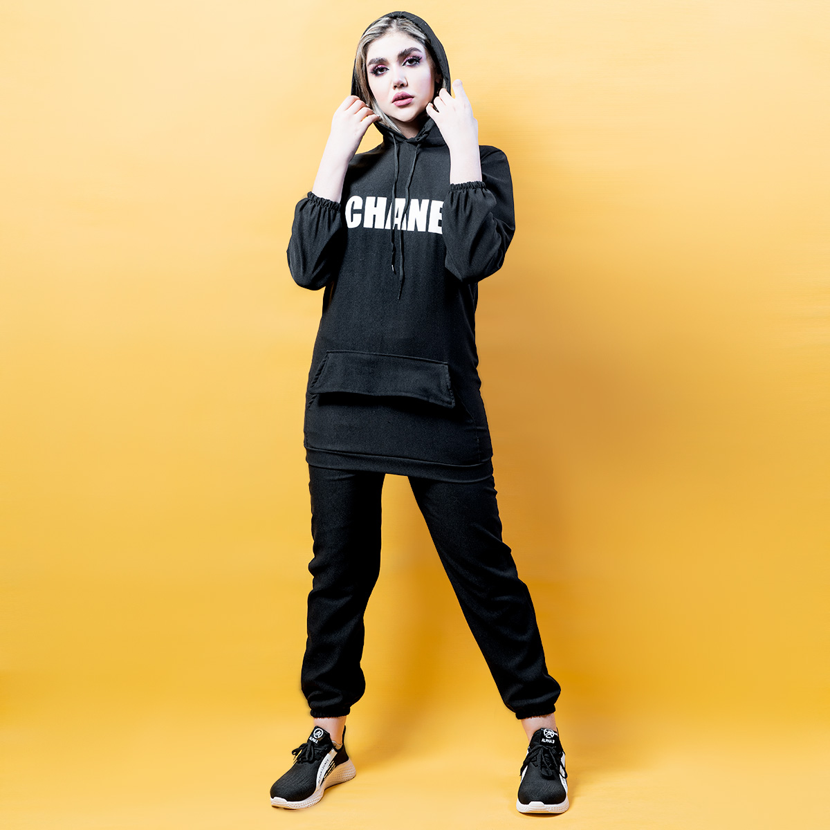 ست هودی شلوار Chanel مشکی دخترانه مدلloniya