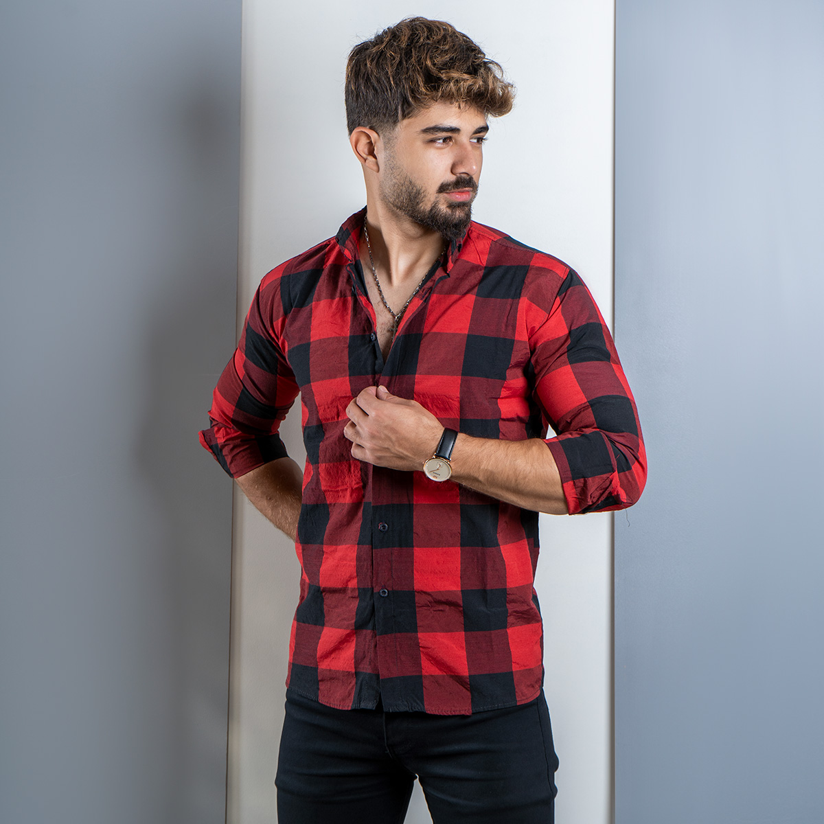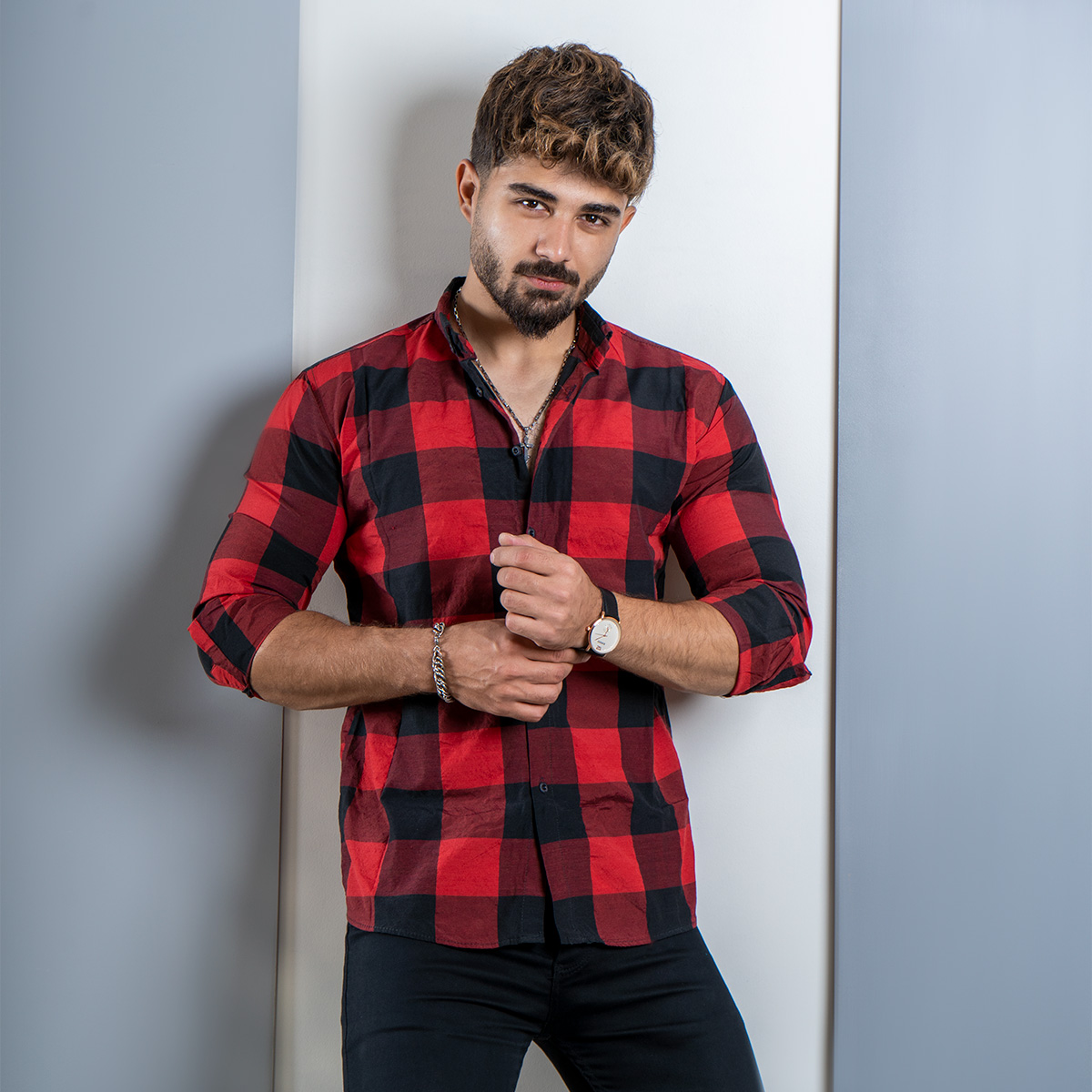 پیراهن مردانه چهارخونه قرمز مشکی (T) مردانه مدل hadin