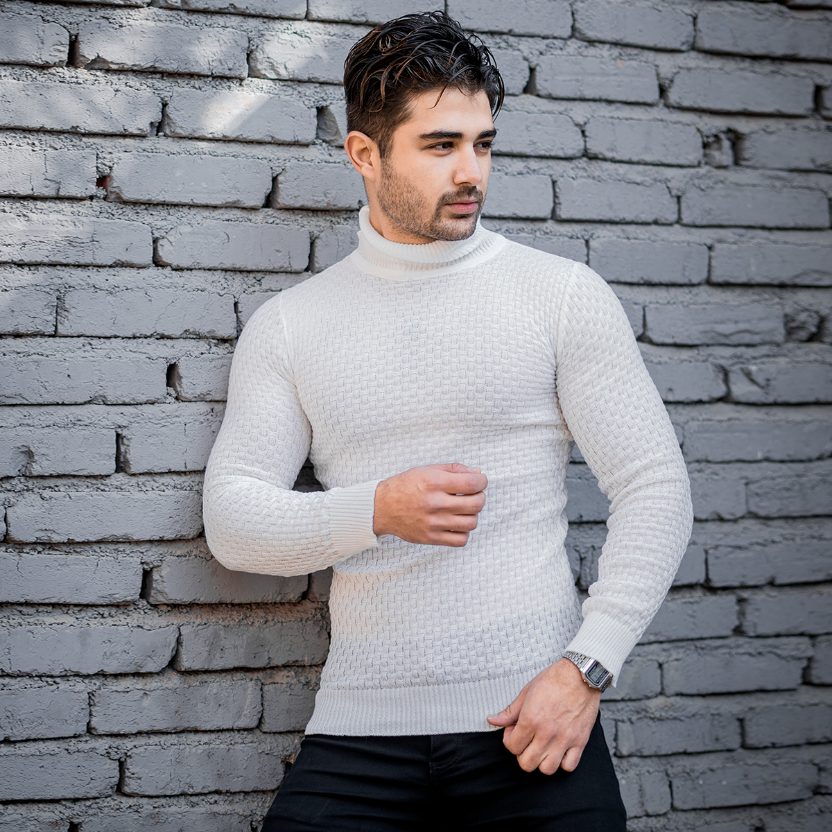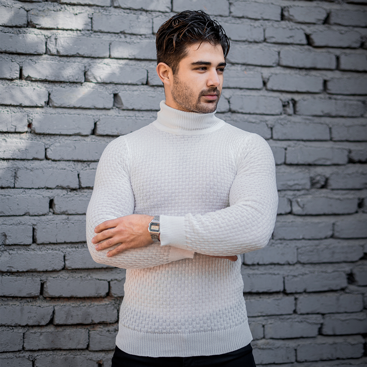 پلیور یقه اسکی مردانه سفید مدل Oktav