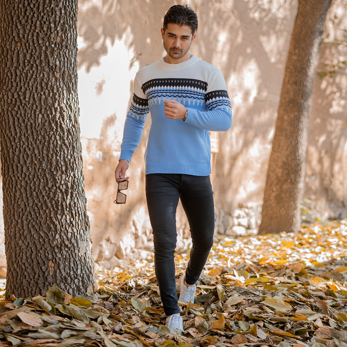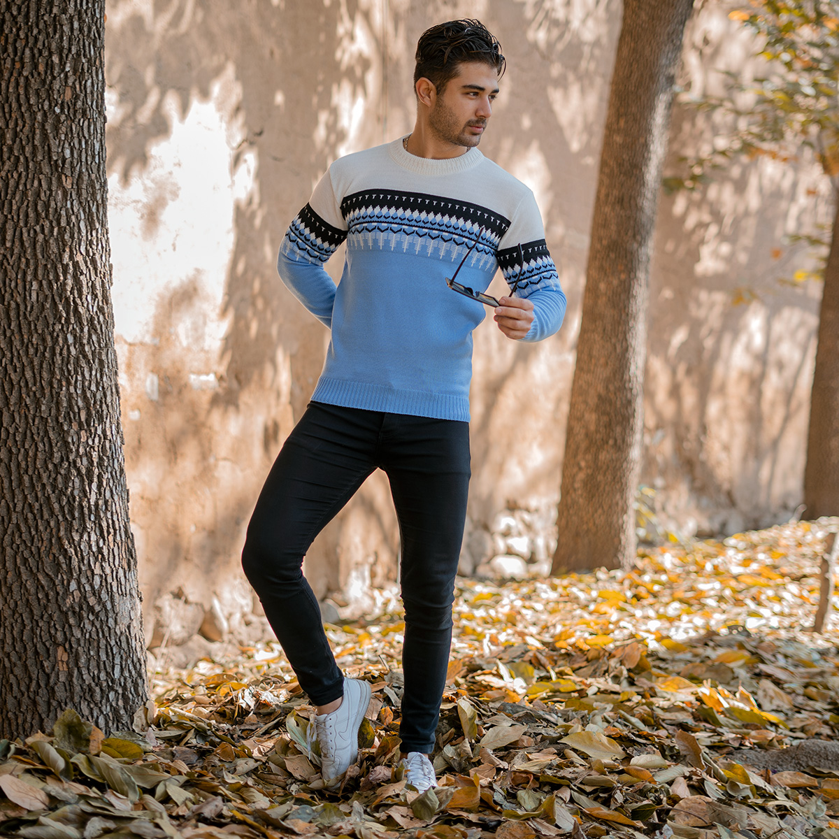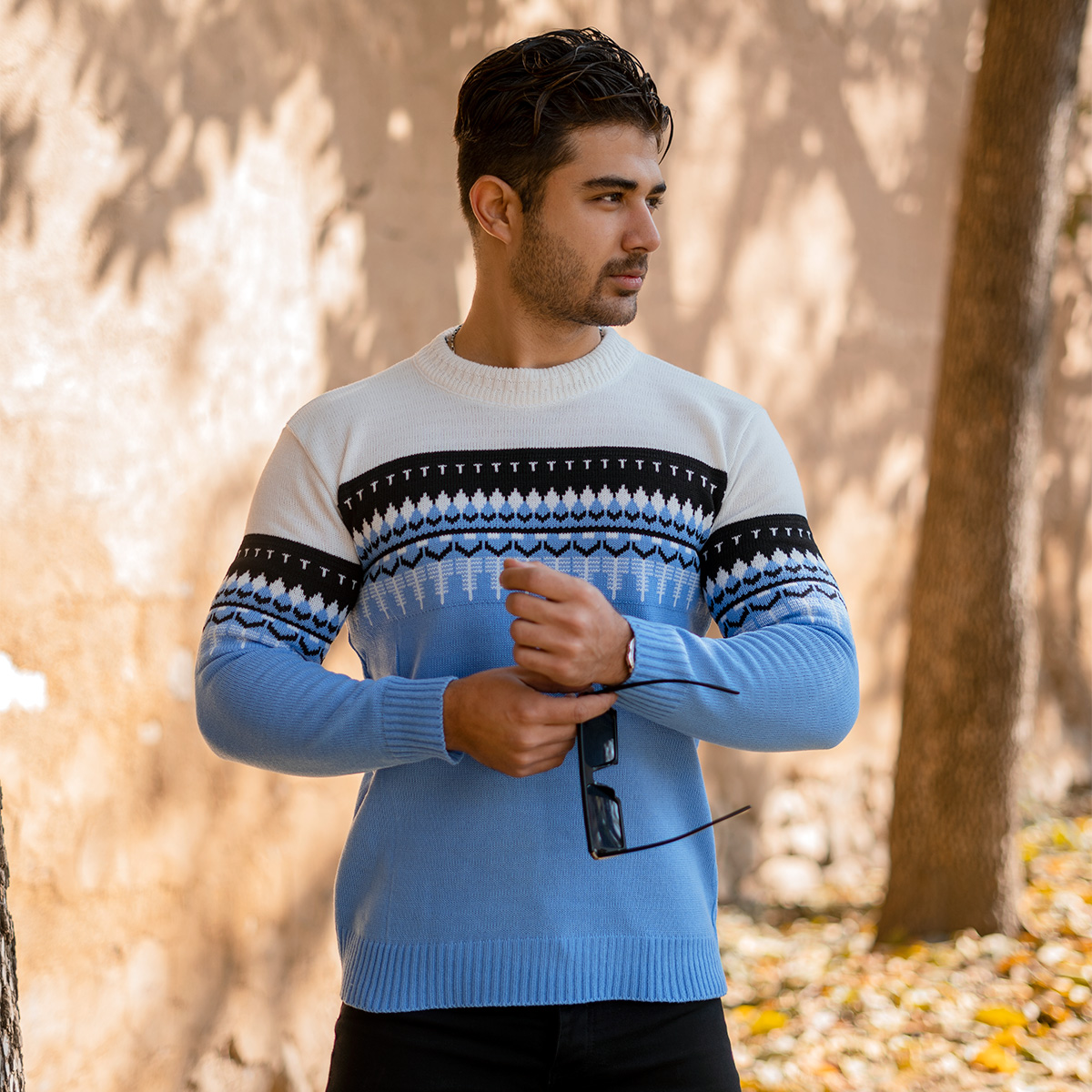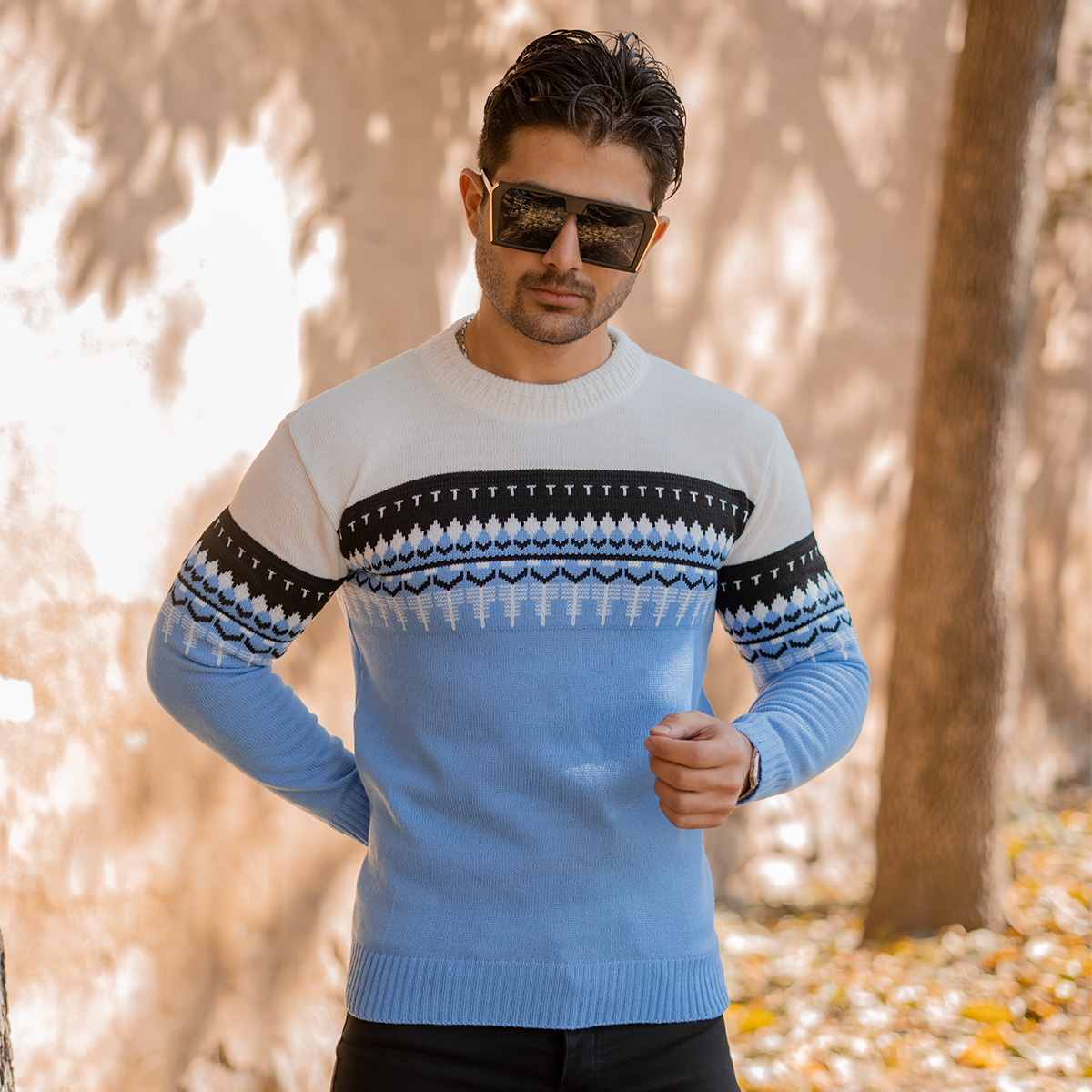 پلیور ژاکارد آبی فولادی مردانه مدل Sami