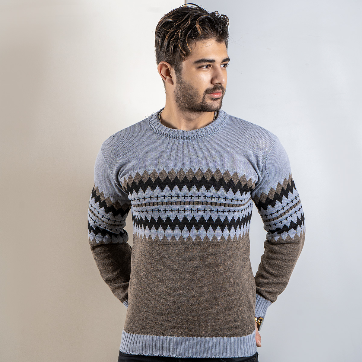 پلیور ژاکارد طوسی قهوهای (T)مدل aroni