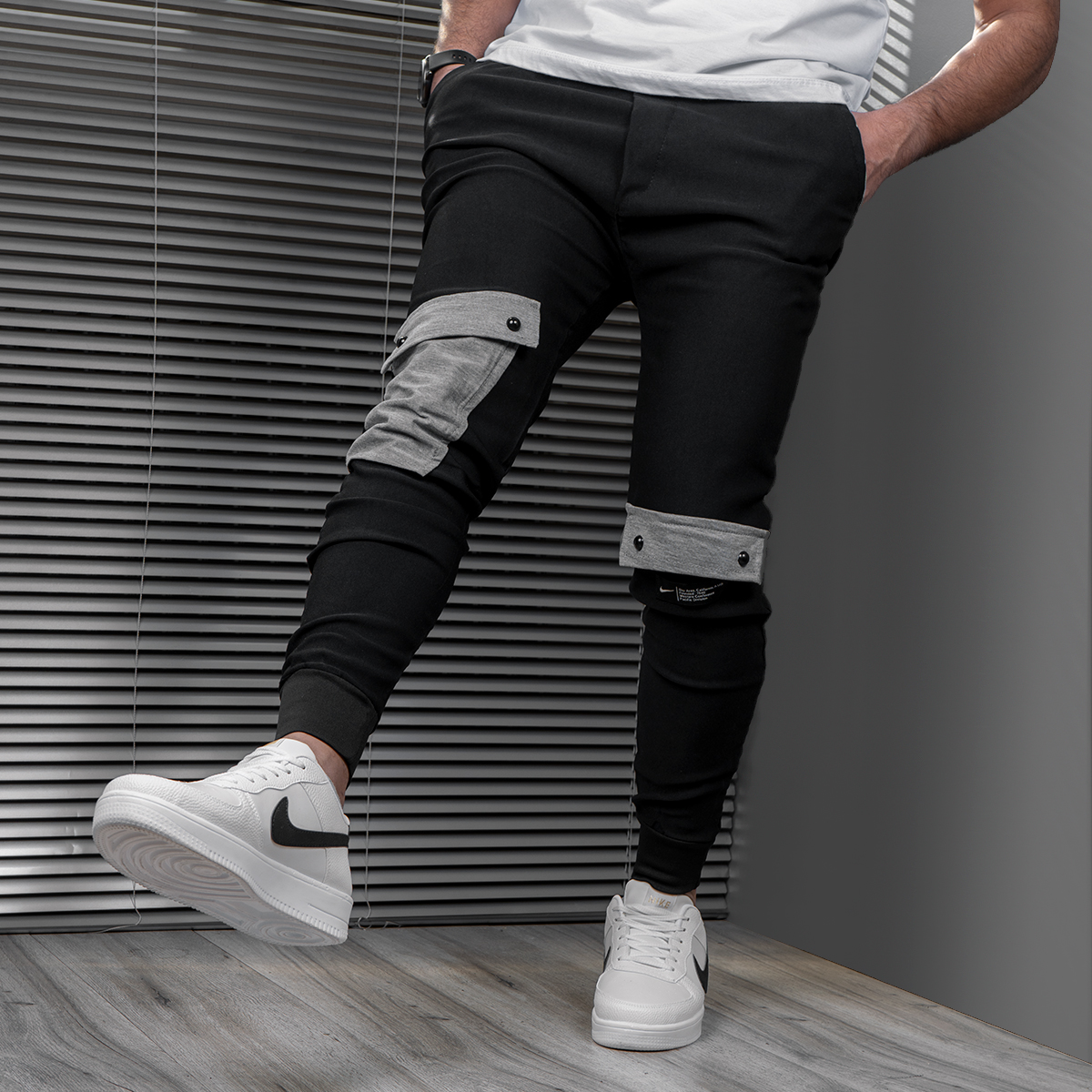 شلوار اسلش مشکی طوسی مردانه مدل Mehrab