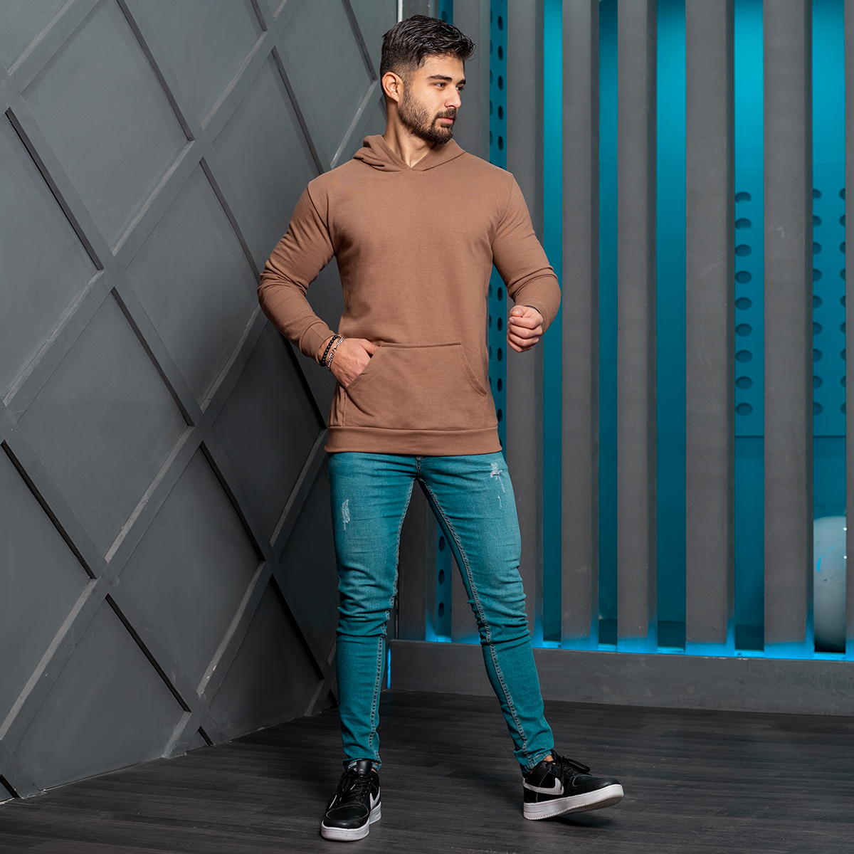 هودی مردانه قهوه ای مدل Ramtin