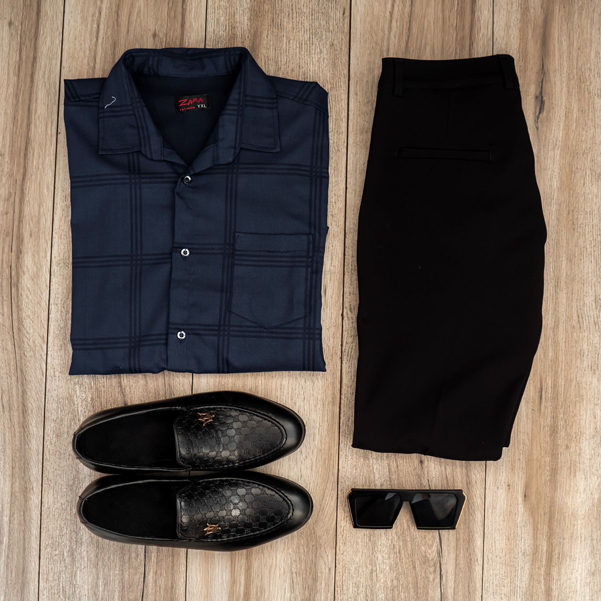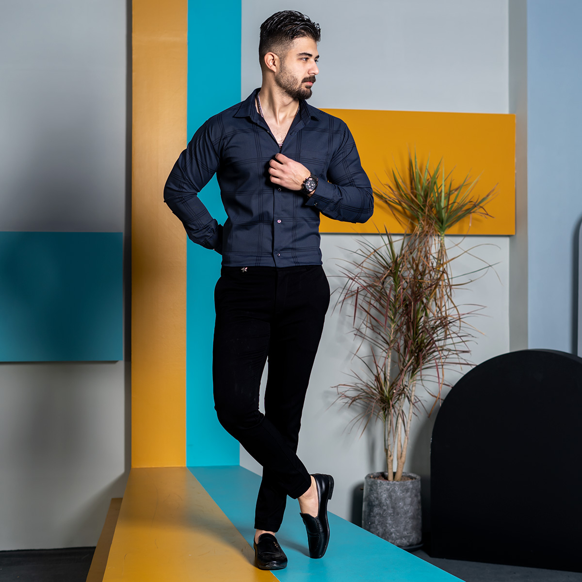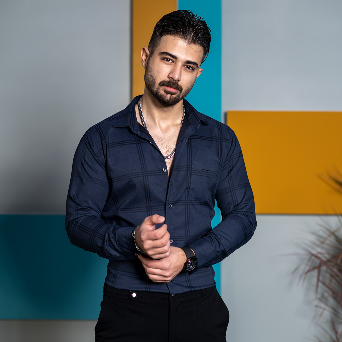 پیراهن مردانه چهارخونه سرمه ای مدل Ravin