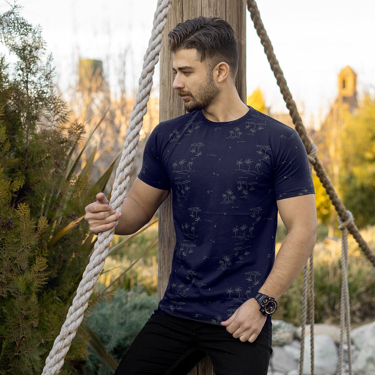 تیشرت هاوایی سرمه ای مردانه مدل E99