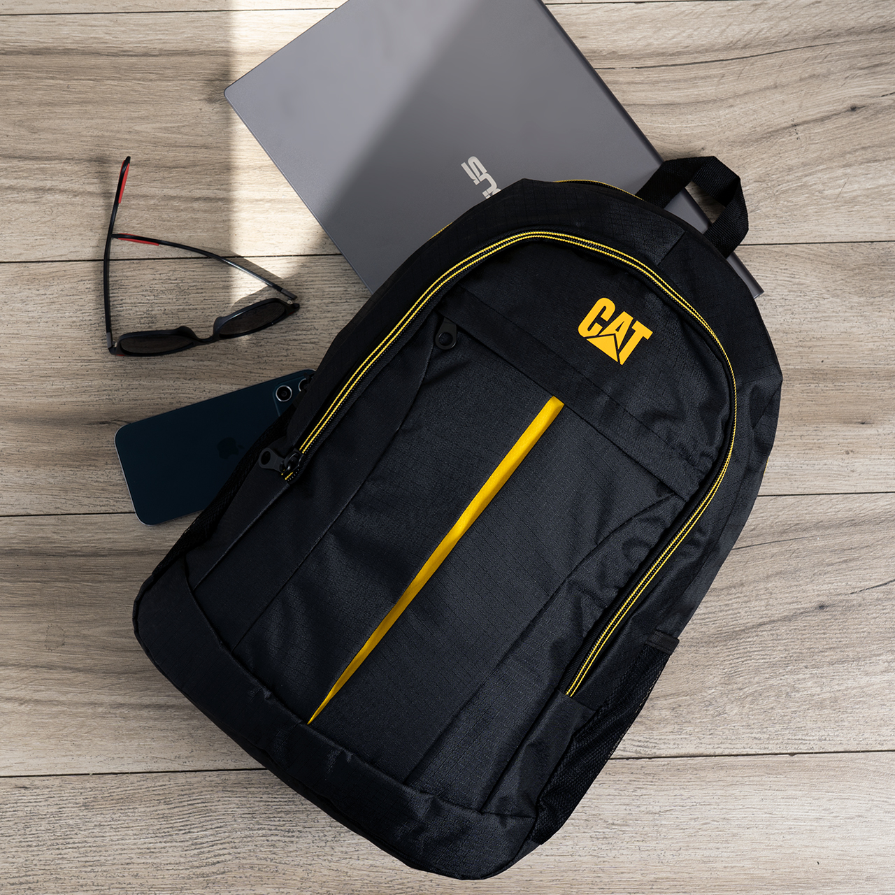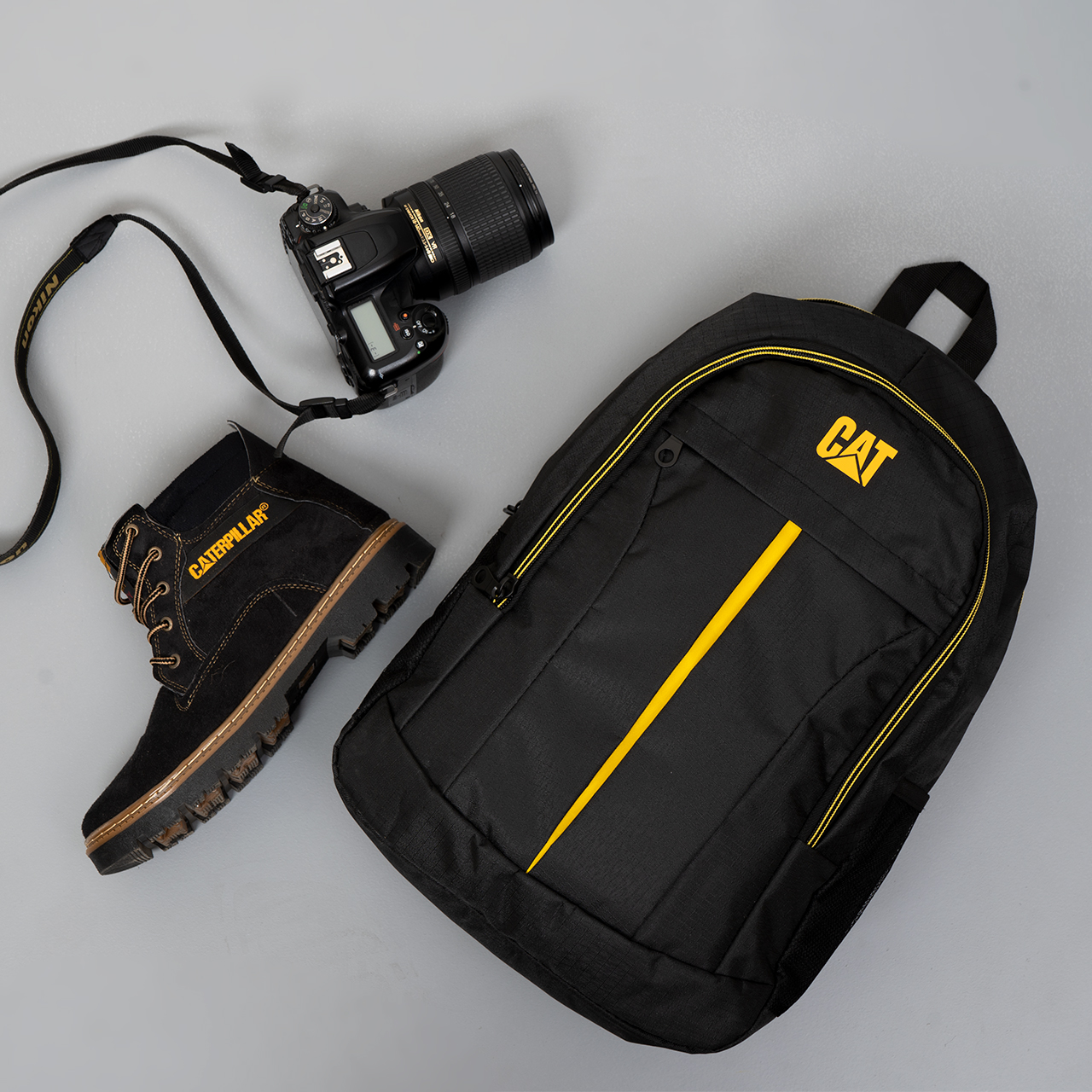 دارای یک محفظه بزرگ و دو جیب کوچکتر روی کیف و دو جیب کناره های کیف