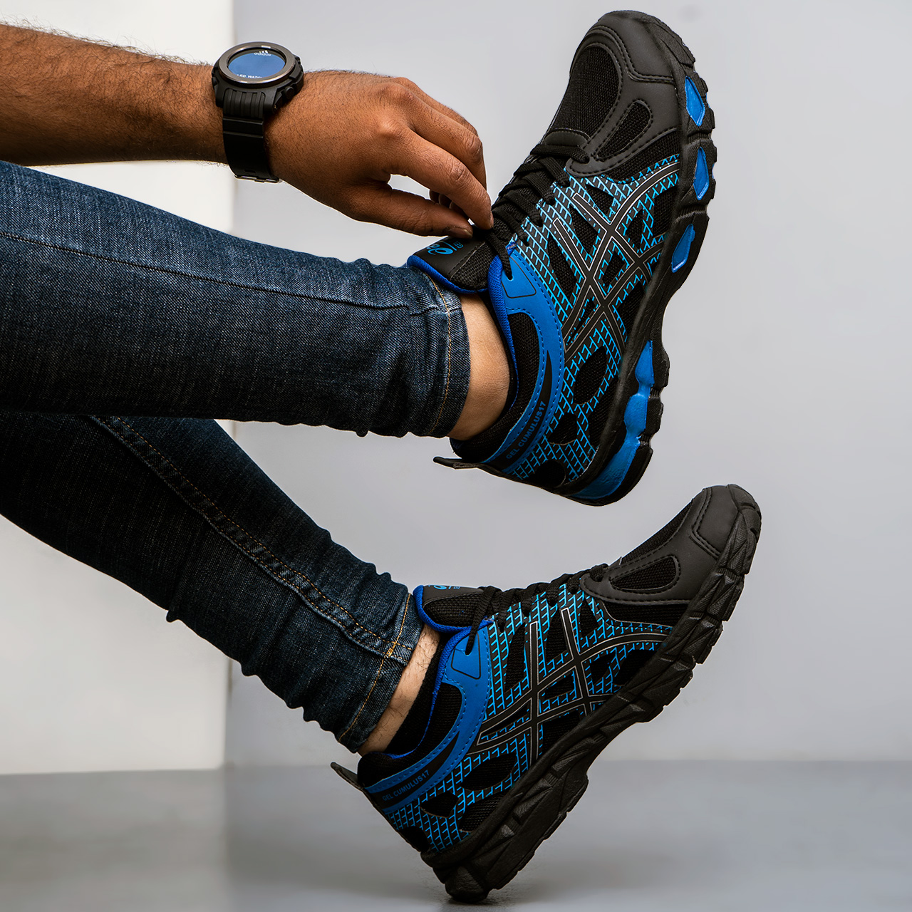 کفش ورزشی اسیکس کفش ورزشی اسیکس مشکی آبی مردانه مدل GEL17