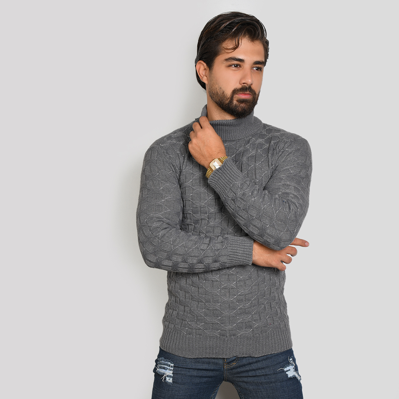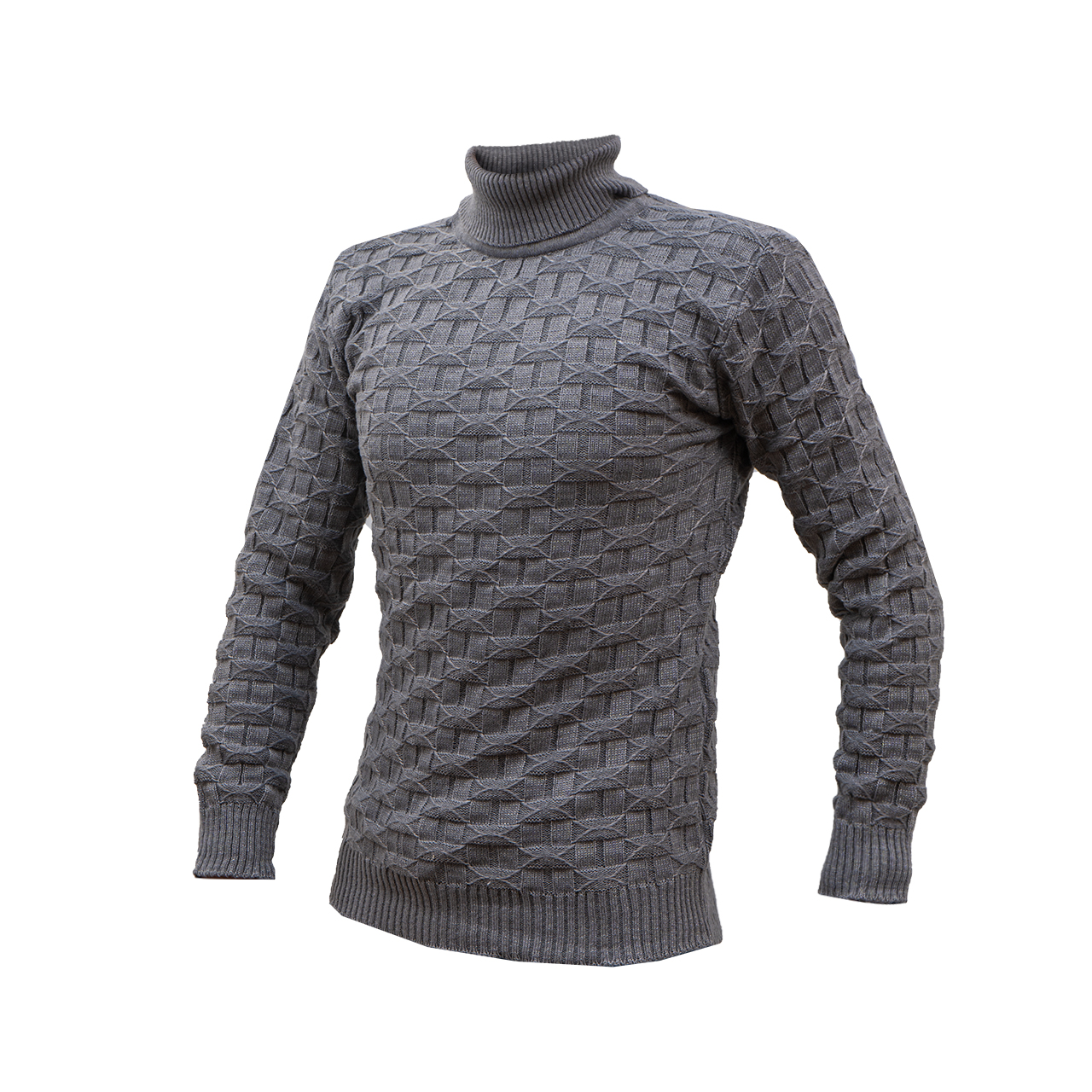 پلیور یقه اسکی طوسی طرح لوزی مردانه مدلG10