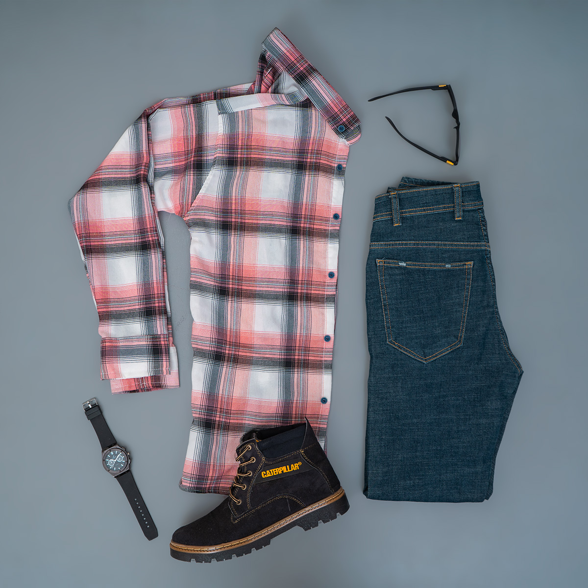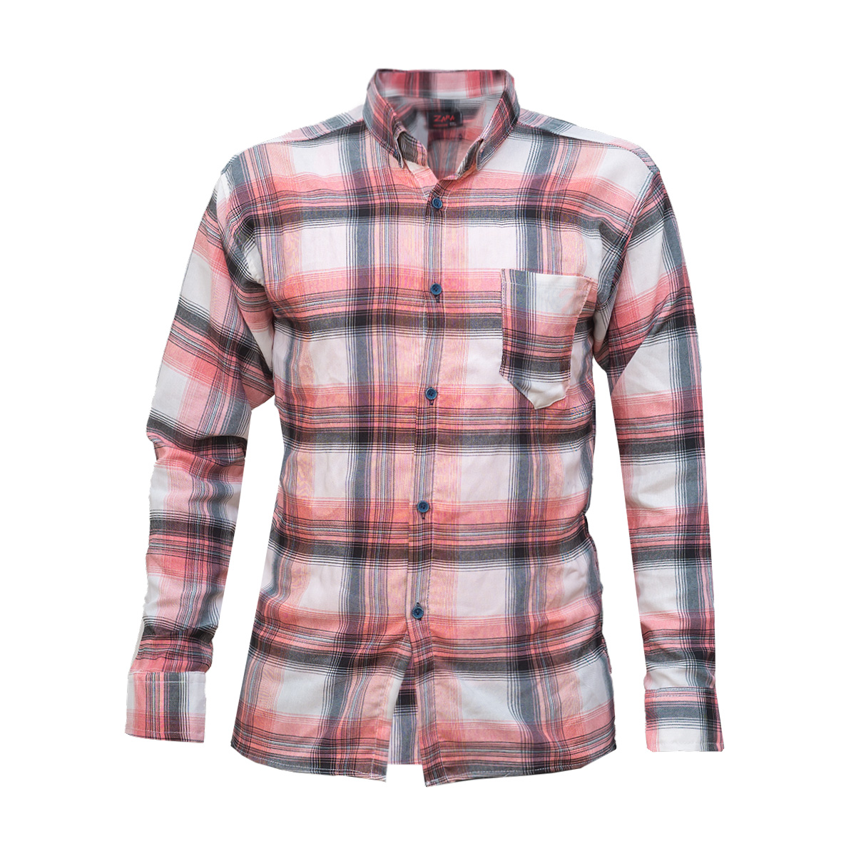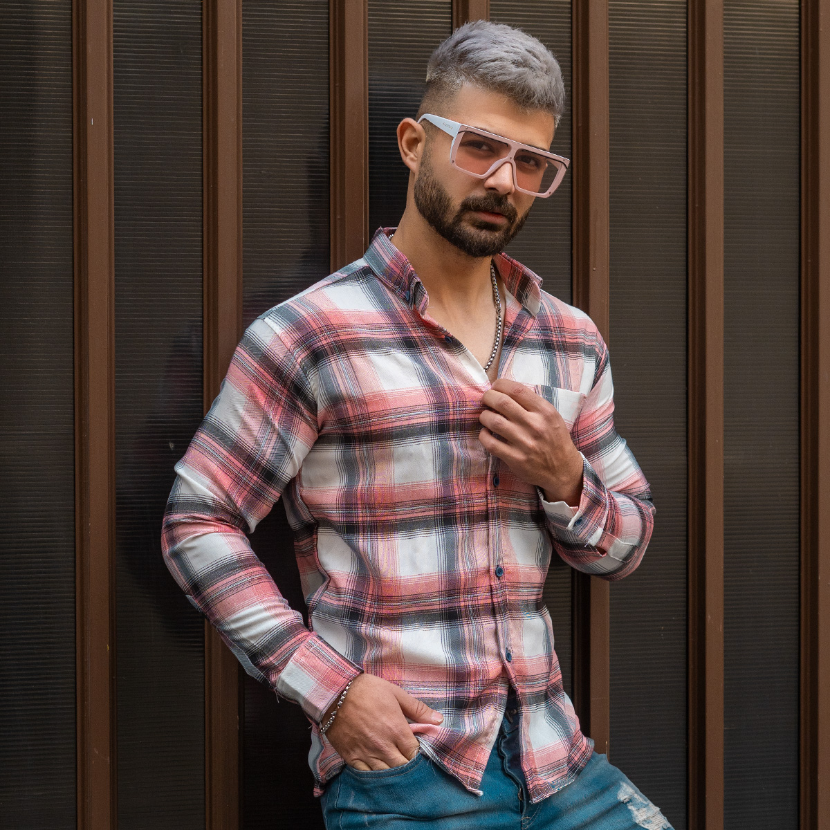 پیراهن مردانه چهارخونه صورتی طوسی مدل alvand