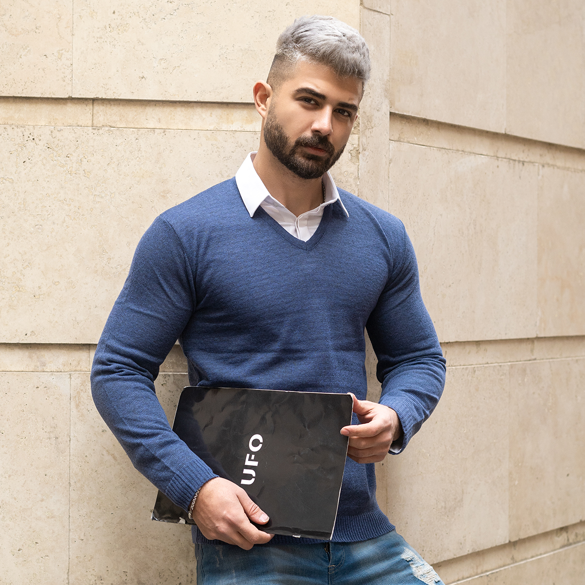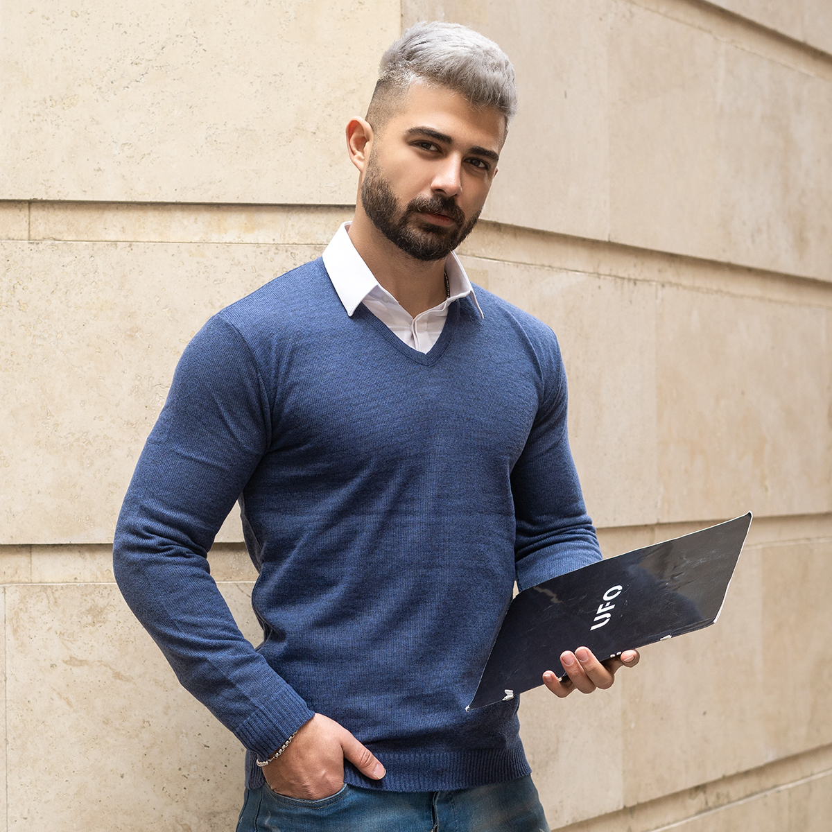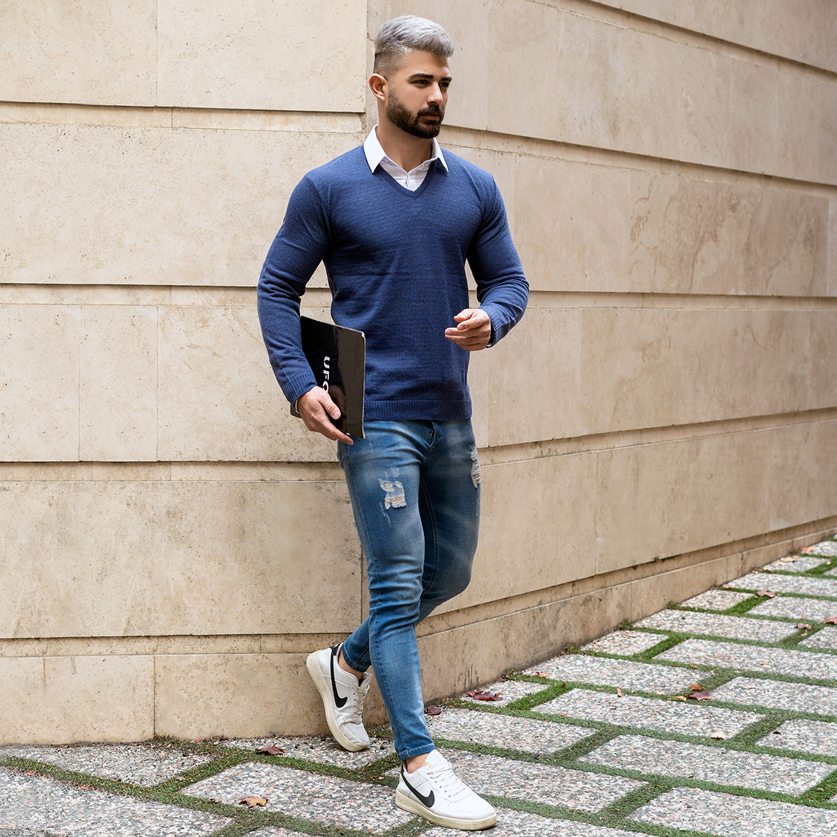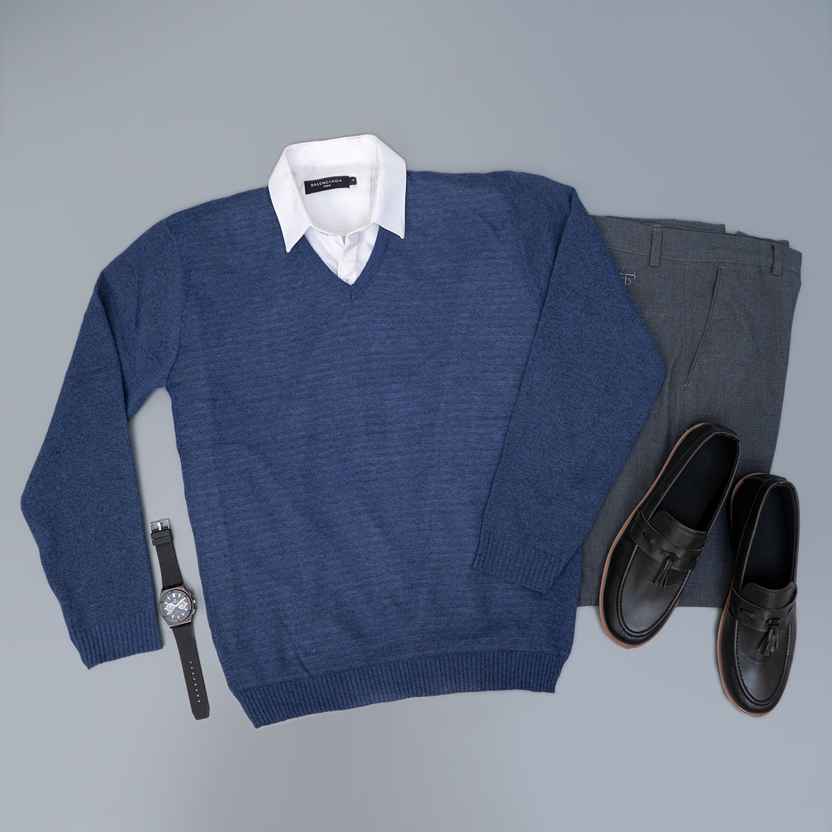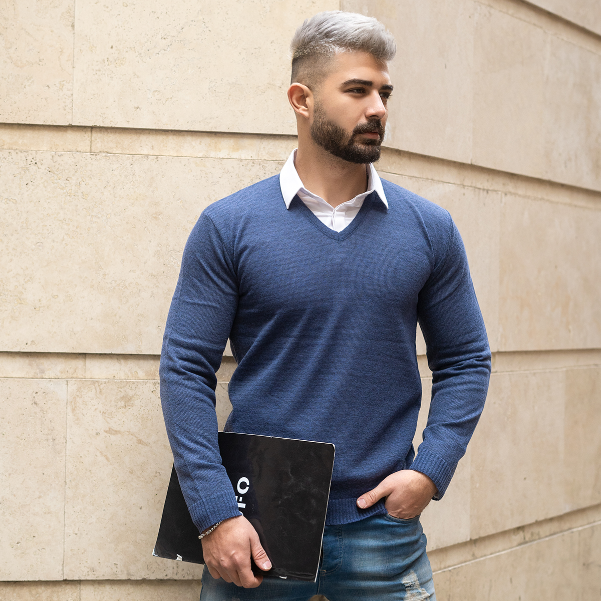 پلیوربافت یقه هفت سرمه ای مردانه مدل sorosh