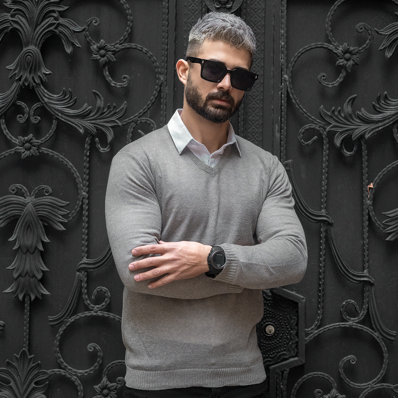 پلیوربافت یقه هفت خاکی مردانه مدل sorosh