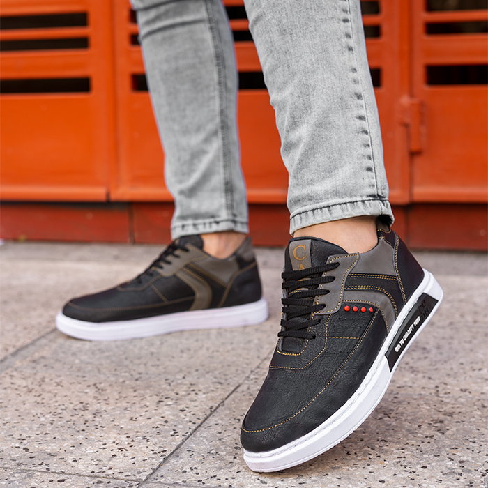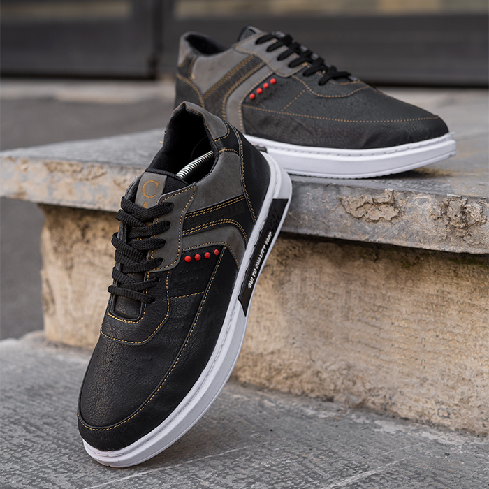 کفش تخت مشکی طوسی مردانه مدل Guitu