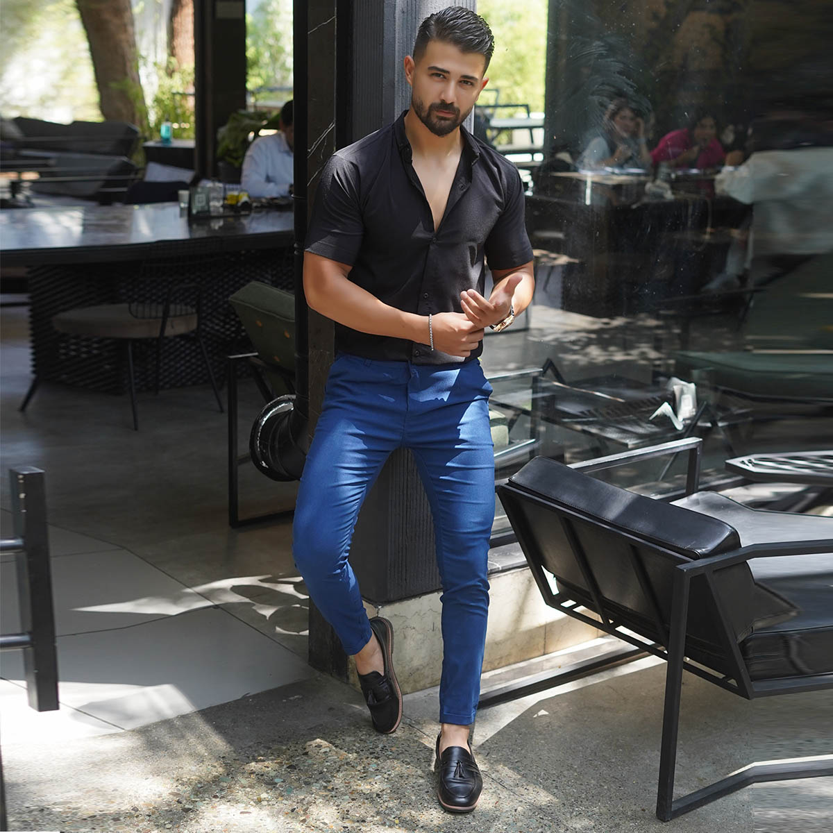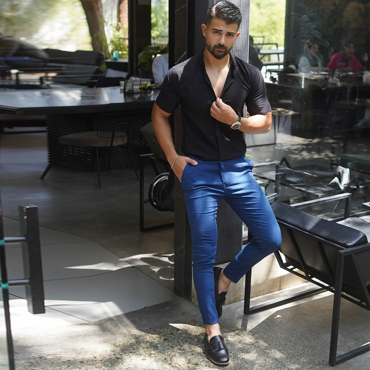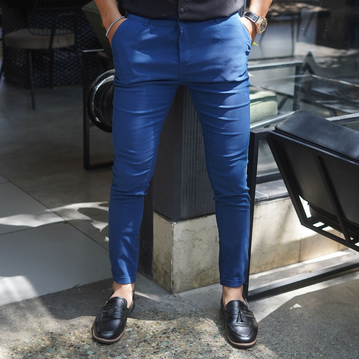 شلوار مردانه آبی مدل MOBIN