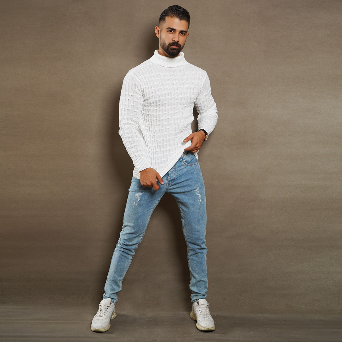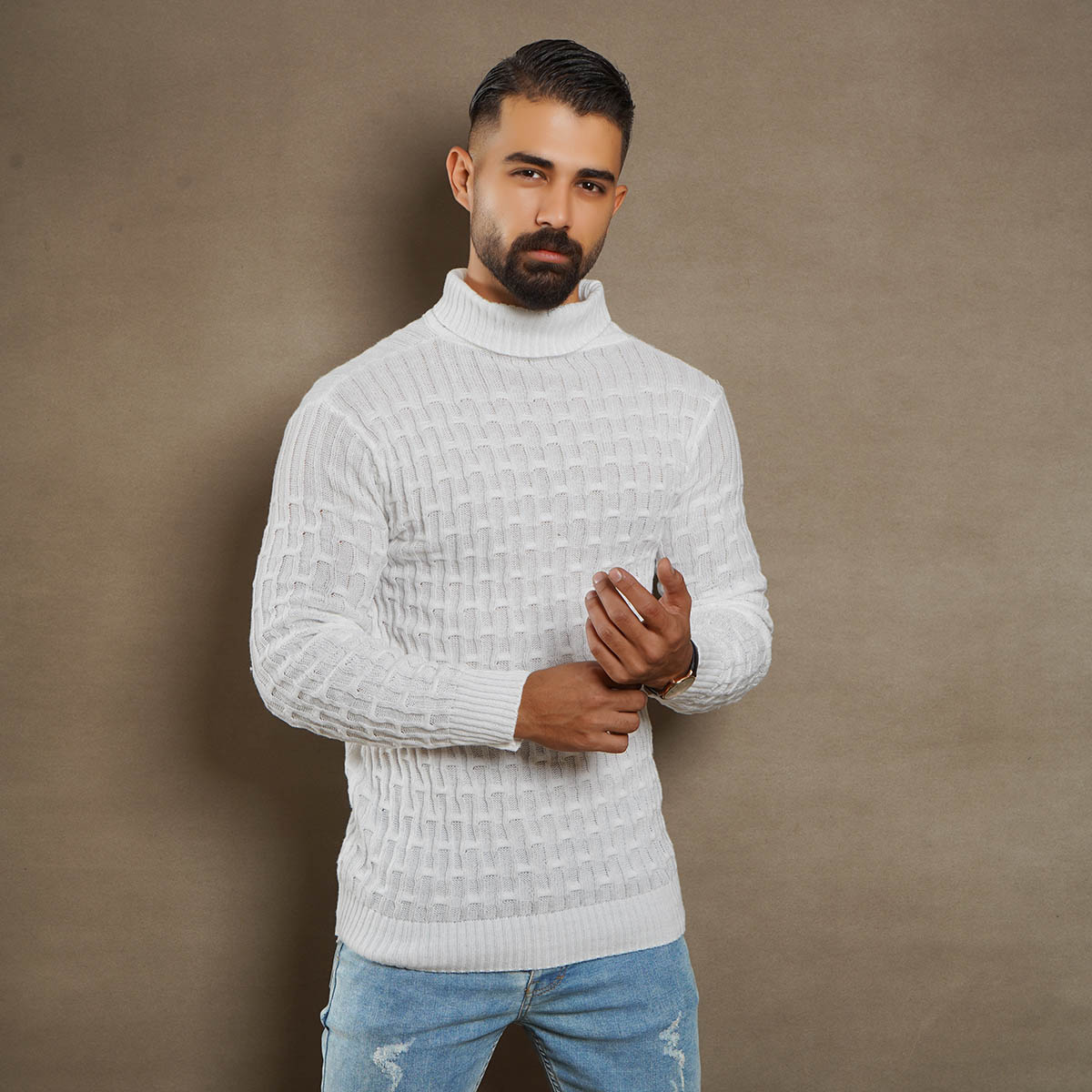 پلیوربافت مردانه سفید یقه اسکی مدل Arad