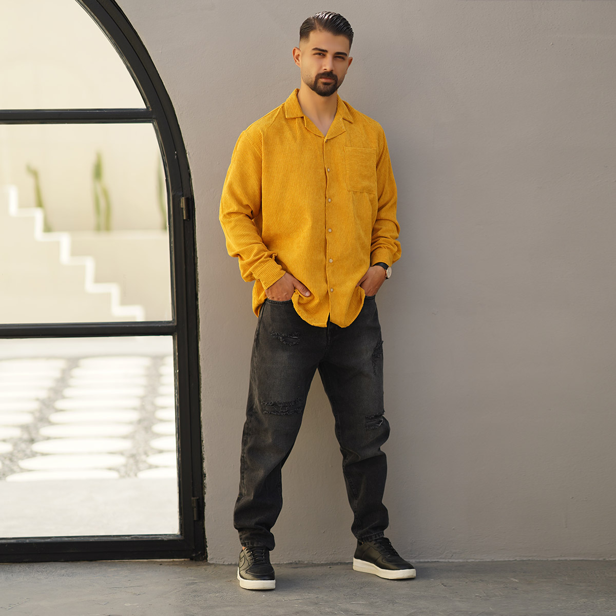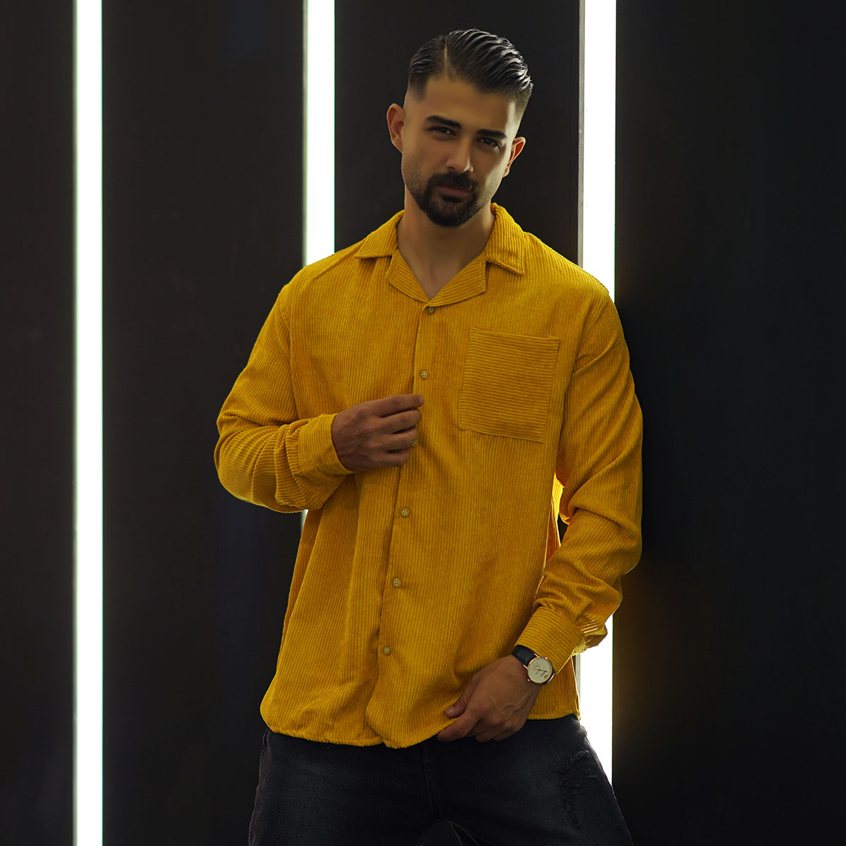 پیراهن مردانه کبریتی خردلی مدل Behtash