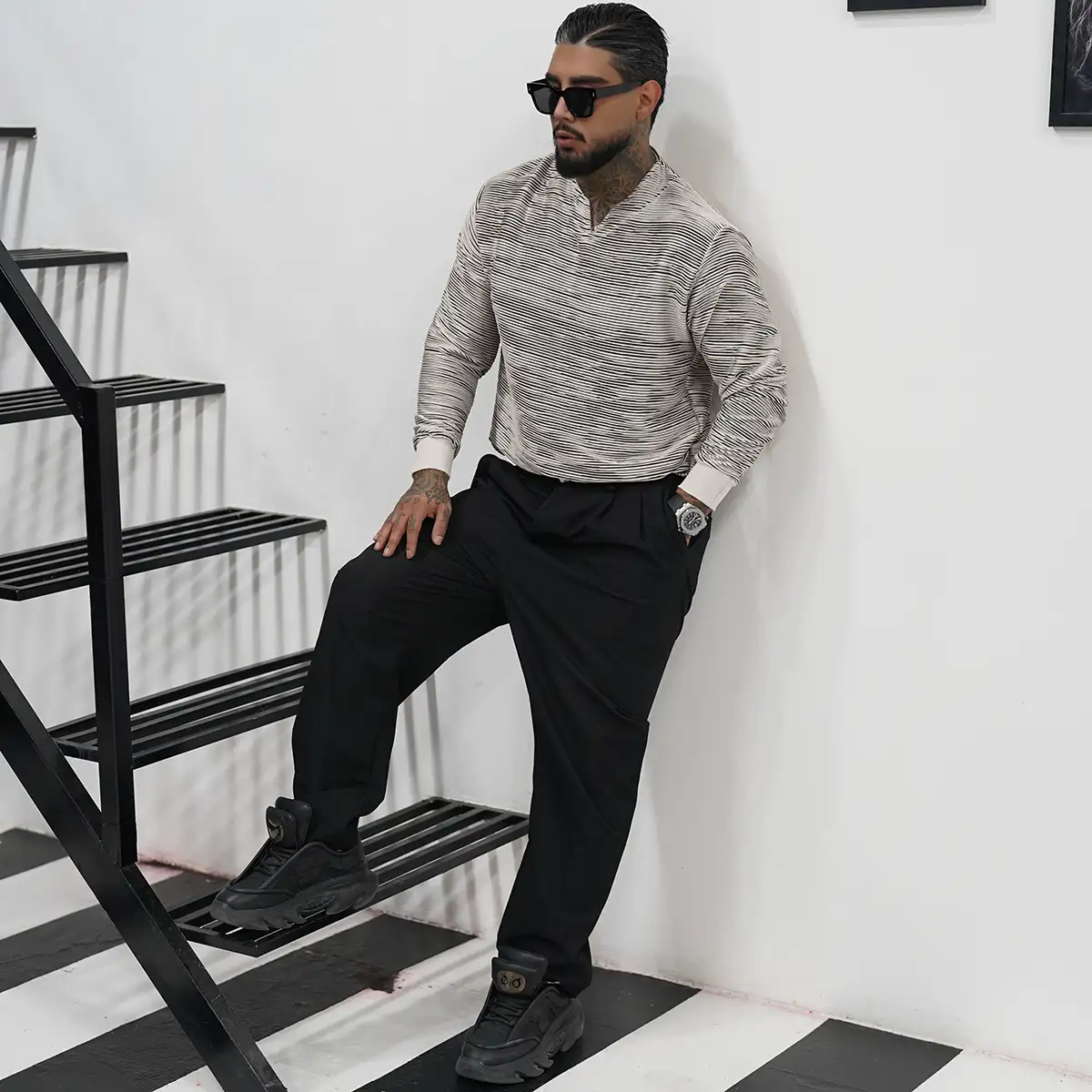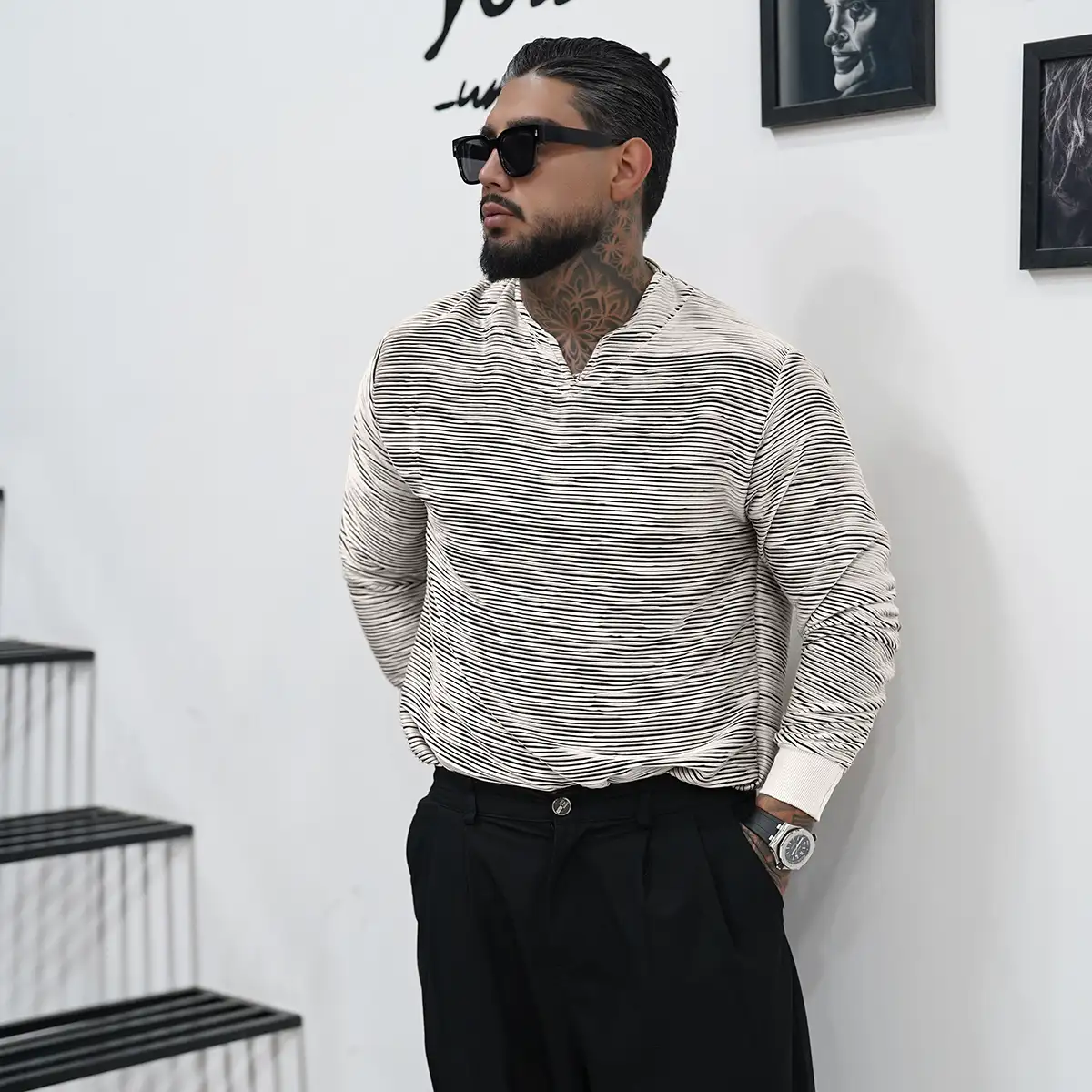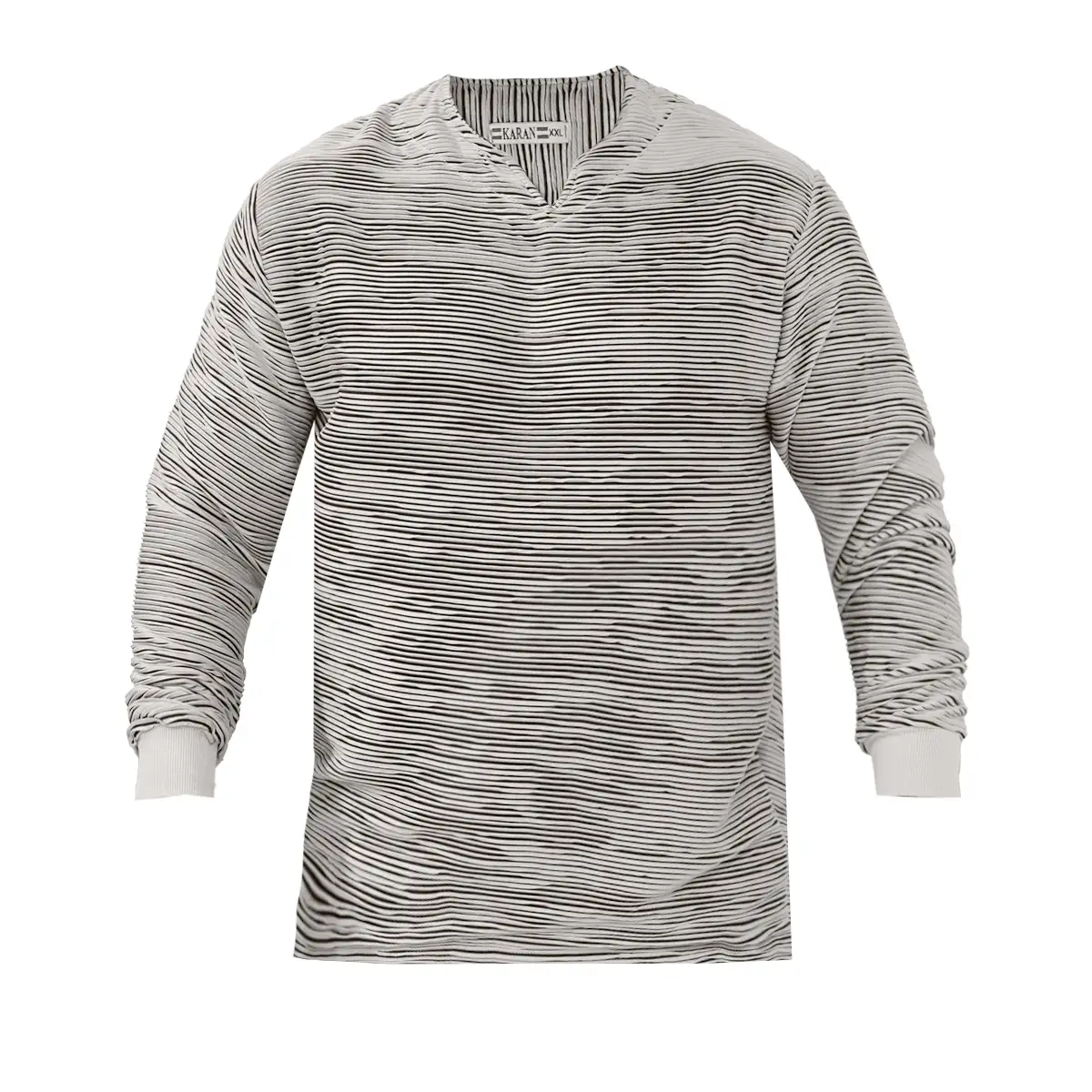 تیشرت آستین بلند یقه کوبایی طوسی روشن مدل Nivad