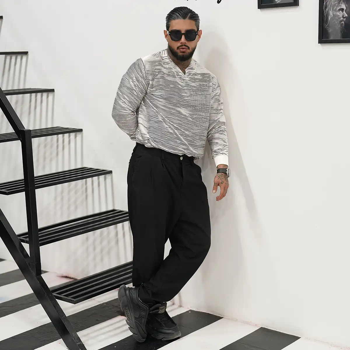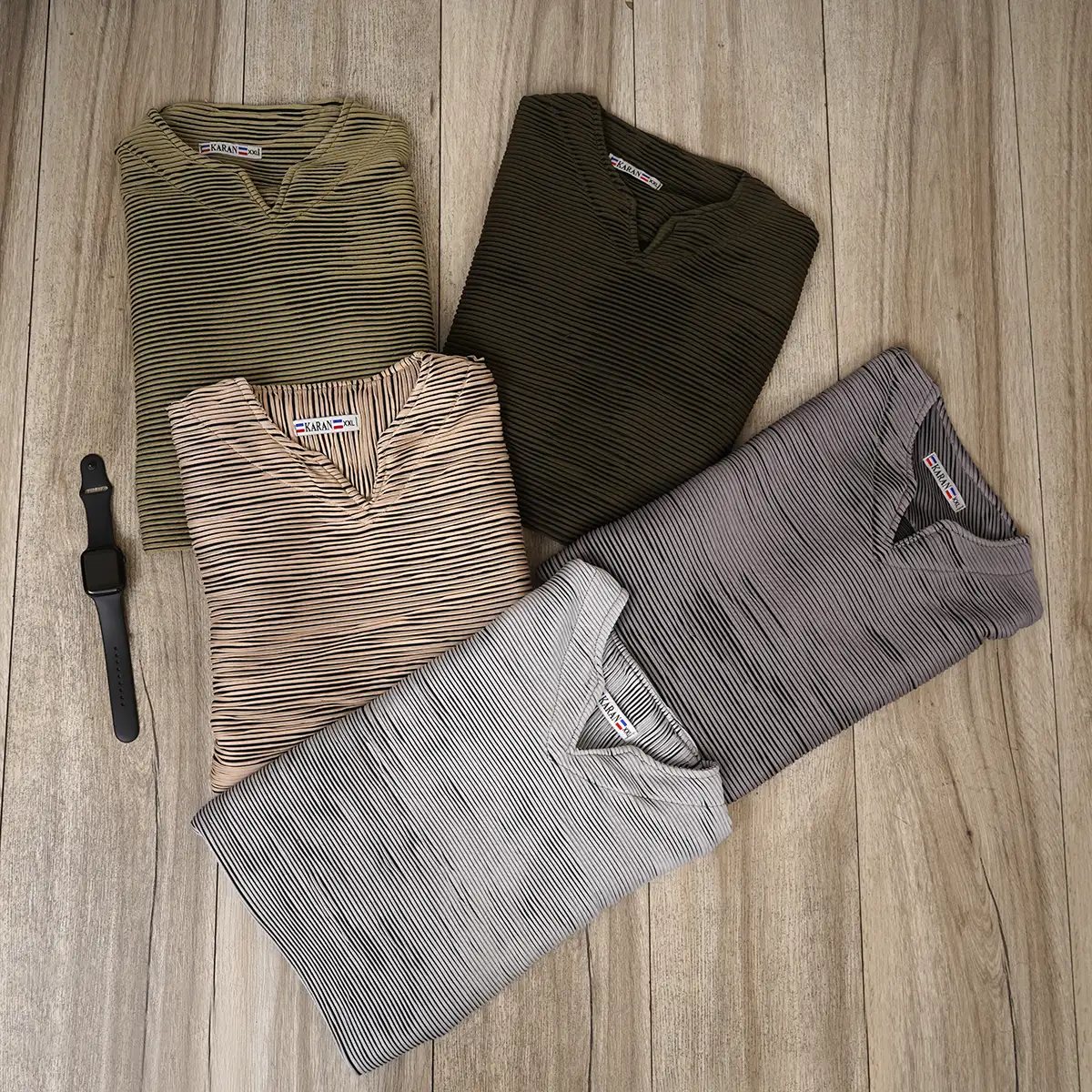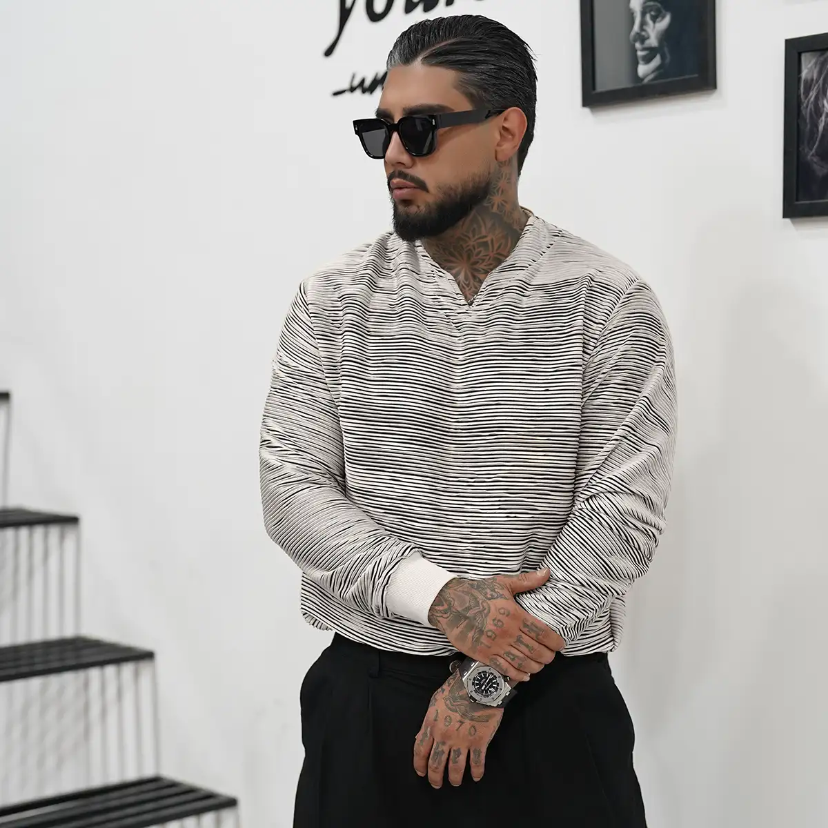 تیشرت آستین بلند یقه کوبایی طوسی روشن مدل Nivad