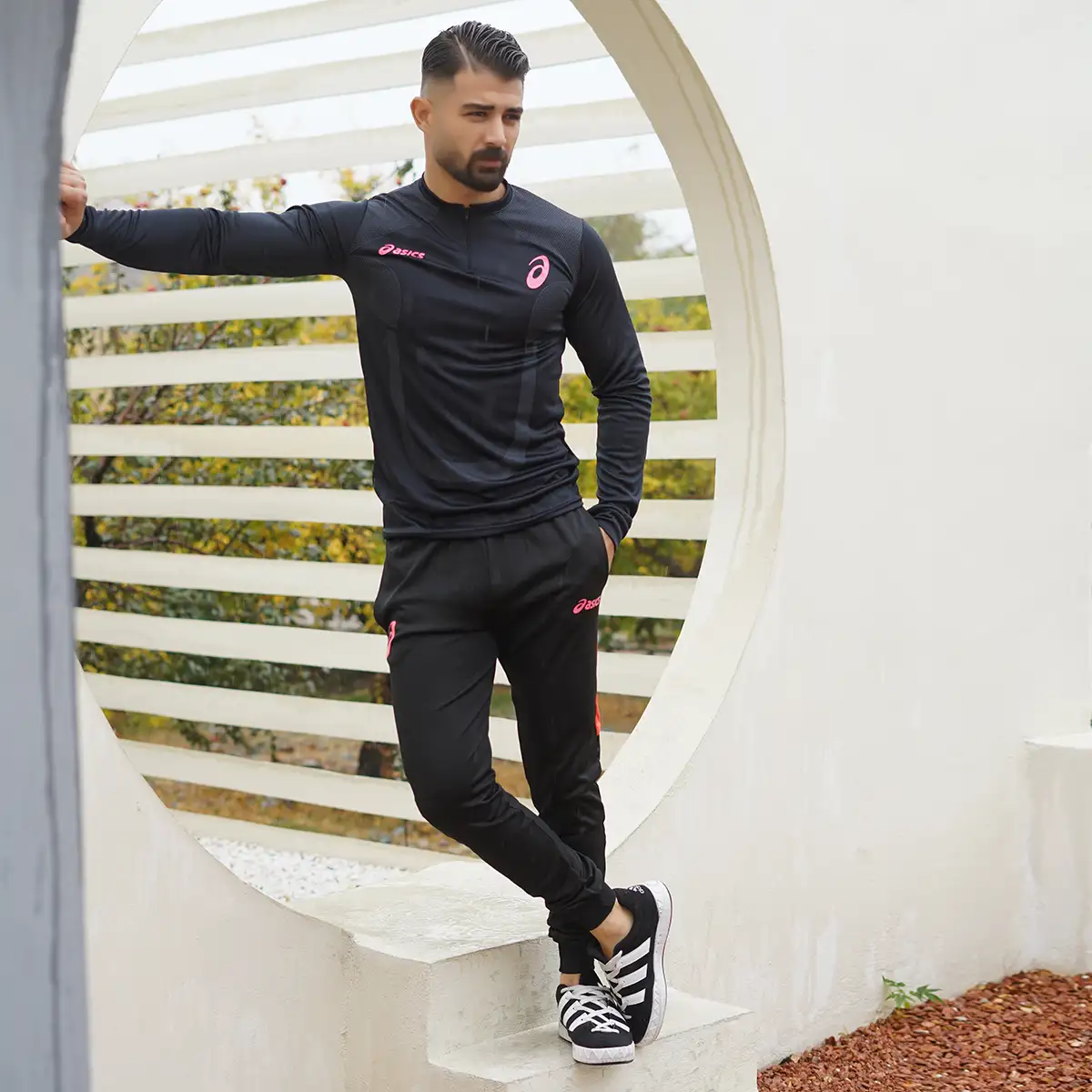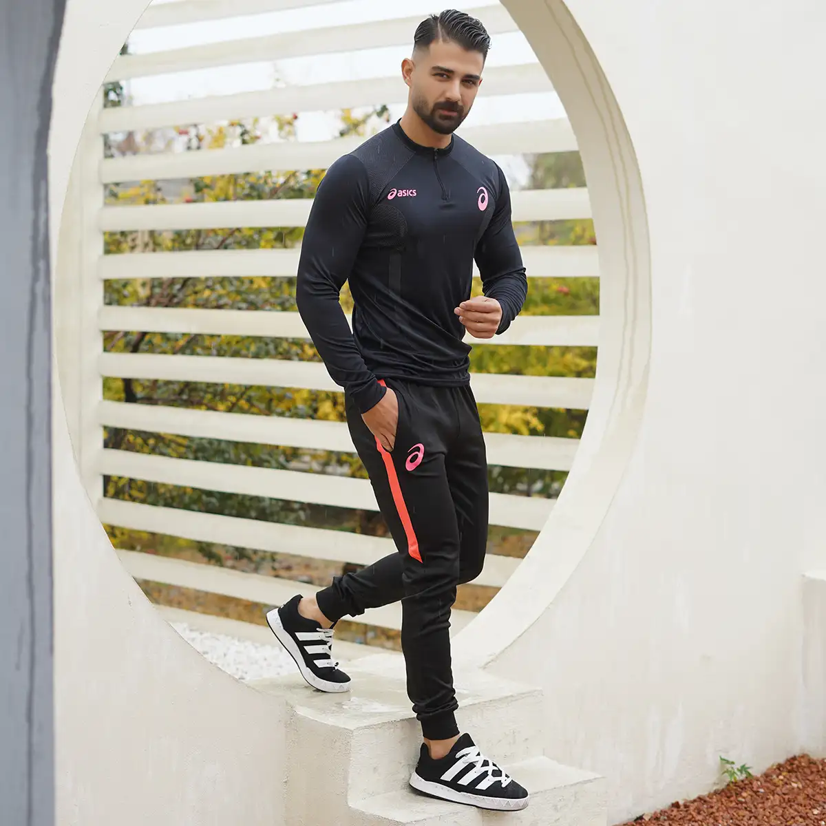 ست تیشرت آستین بلندشلوار مردانه مشکی مدل ASICS