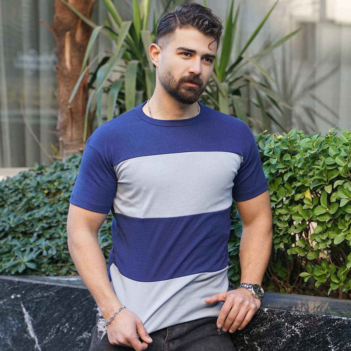 تیشرت مردانه سرمه ای طوسی مدل Dayar