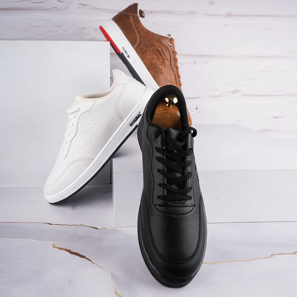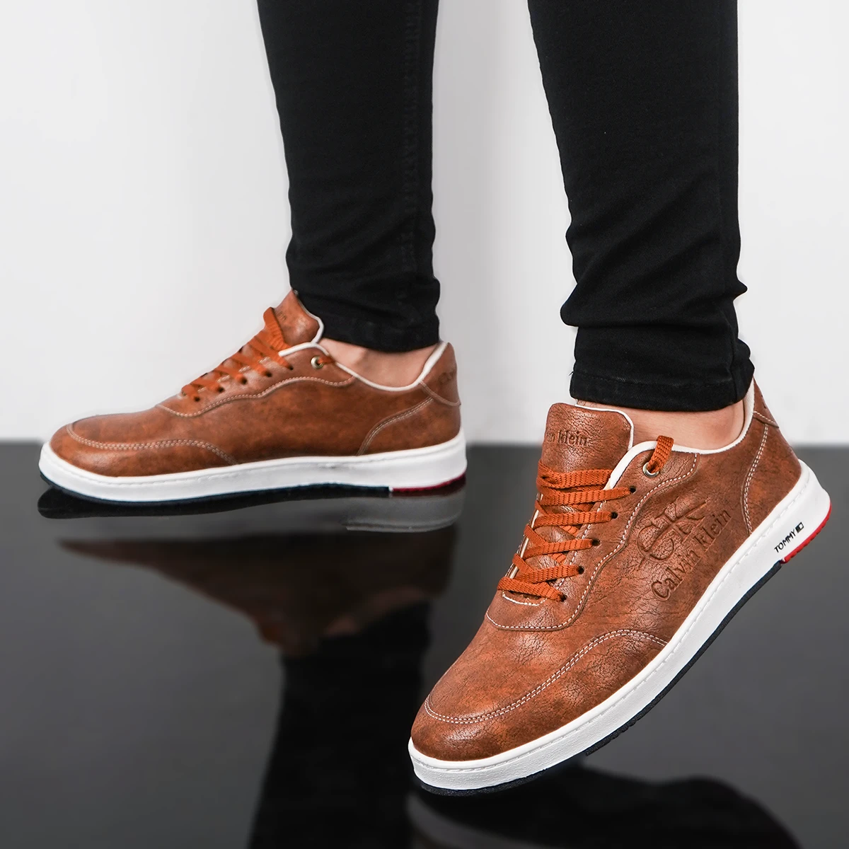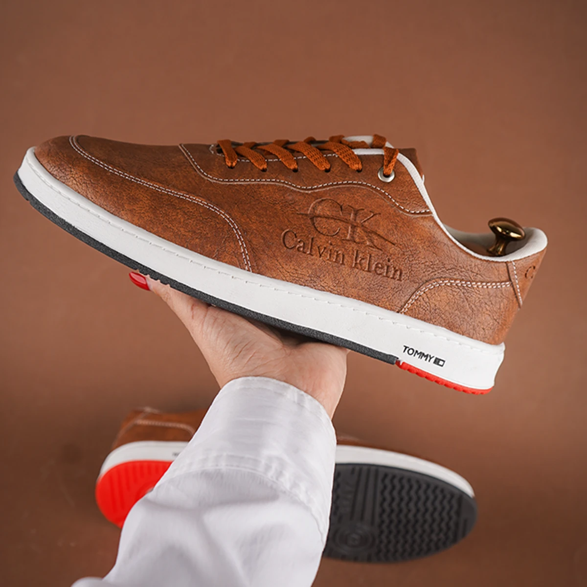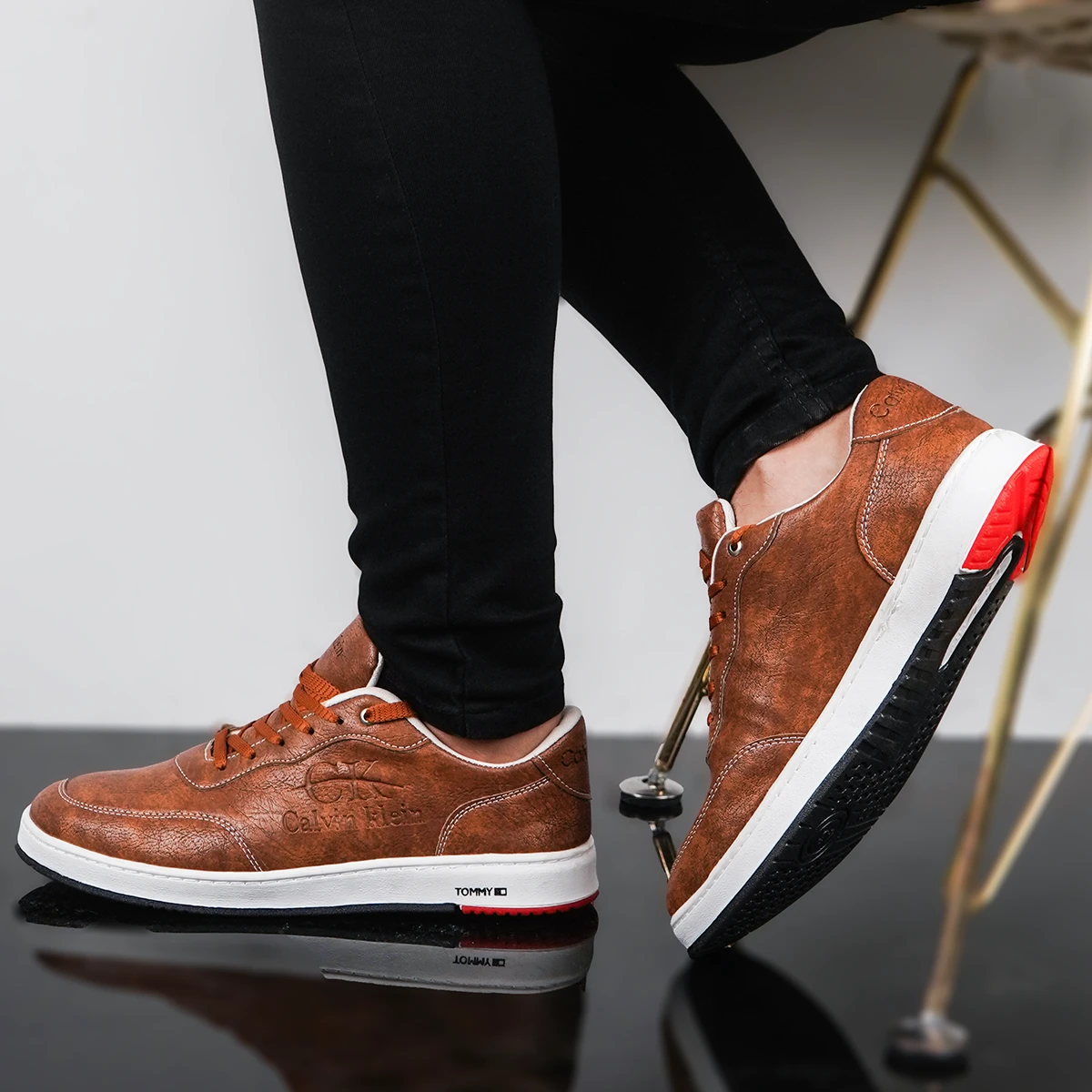 کفش تخت مردانه عسلی مدل CALVIN KLEIN