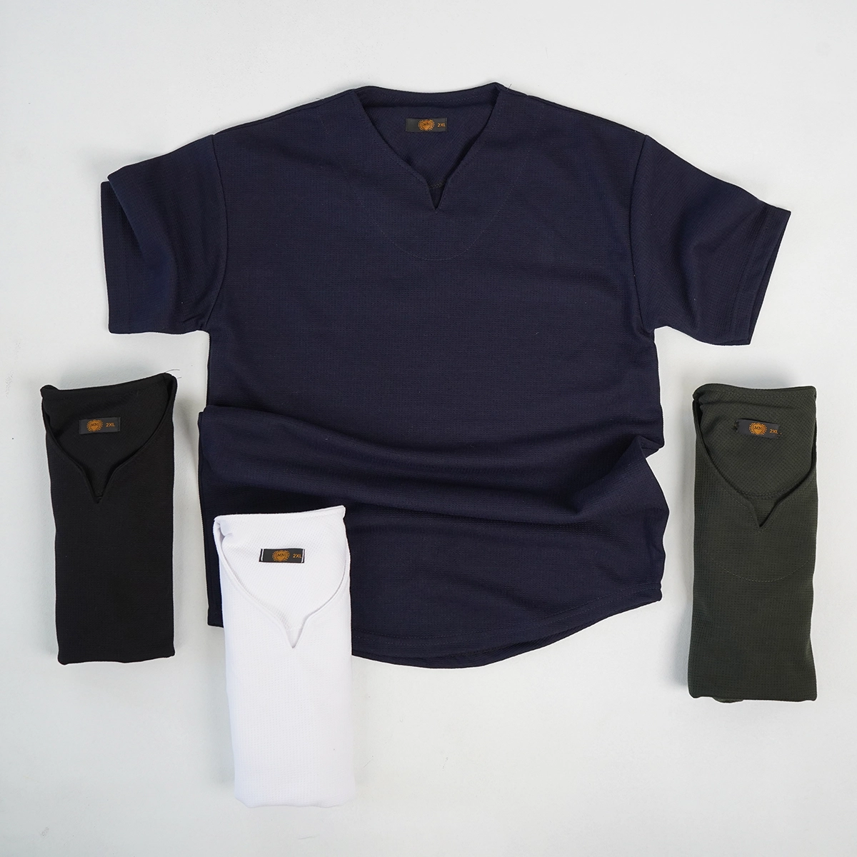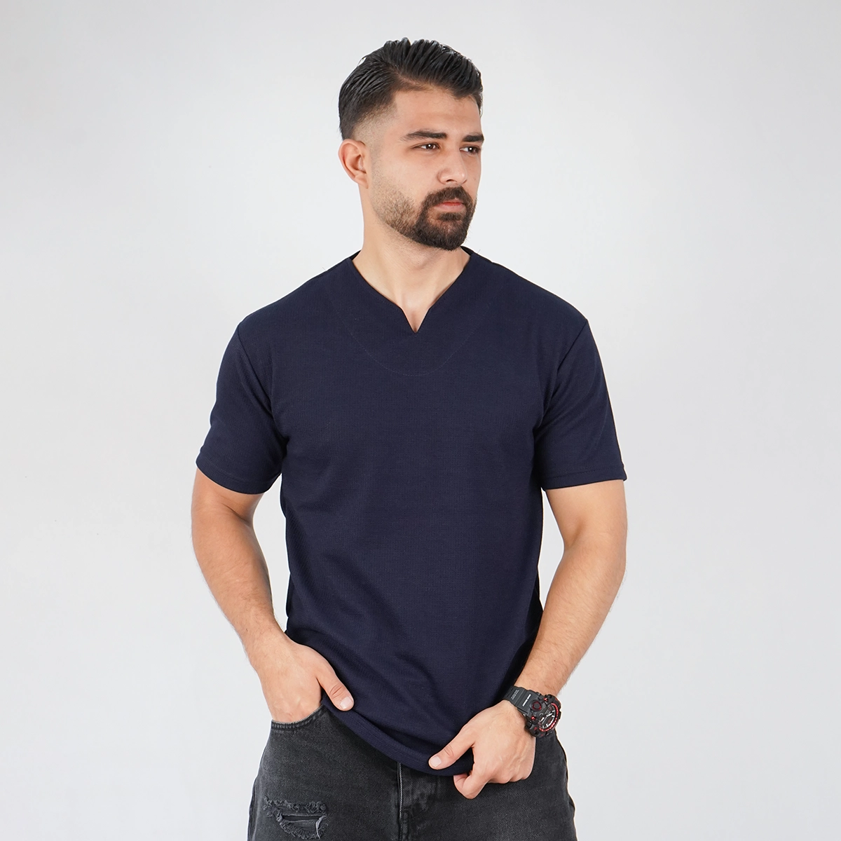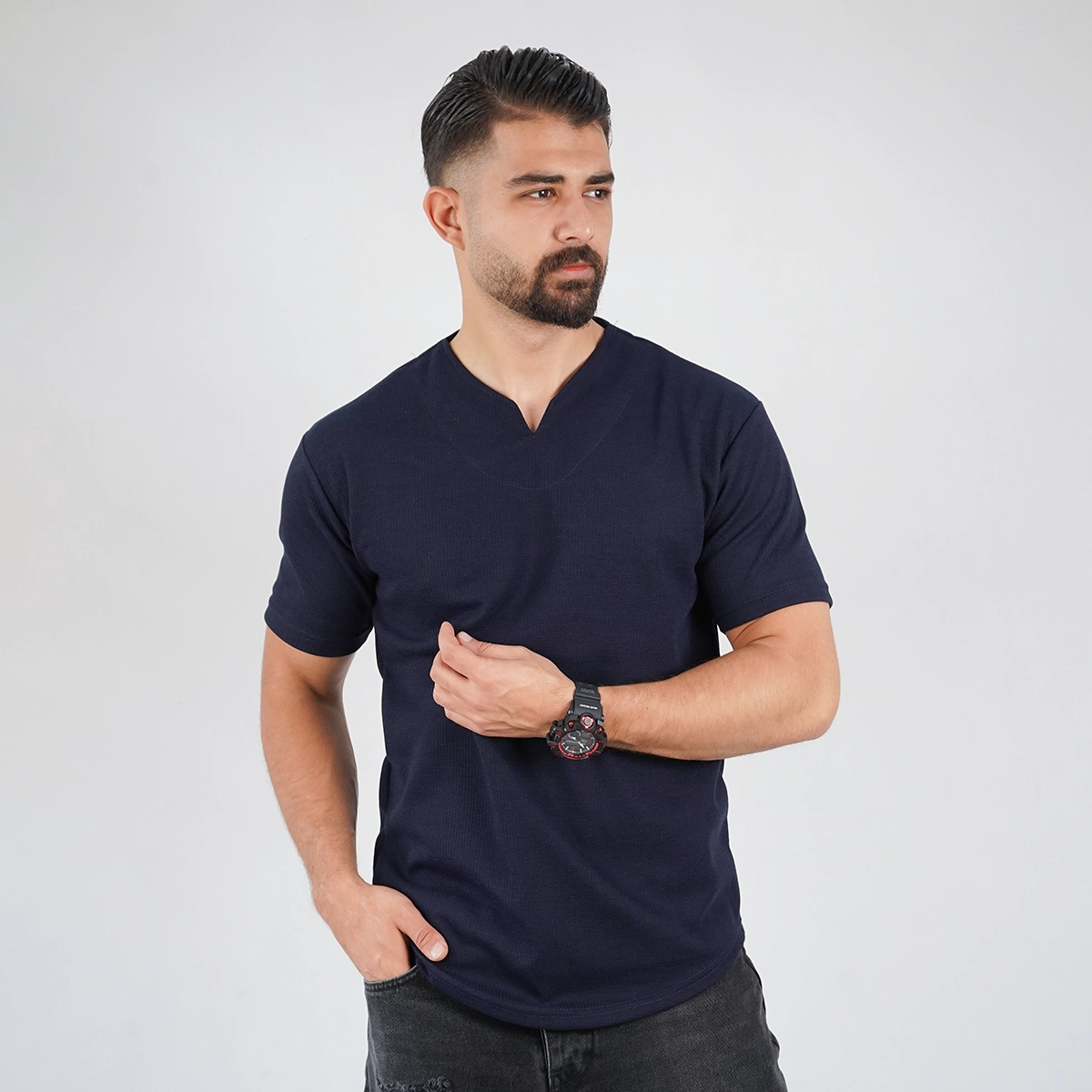 تیشرت سرمه ای یقه کوبایی مردانه مدل Sorad