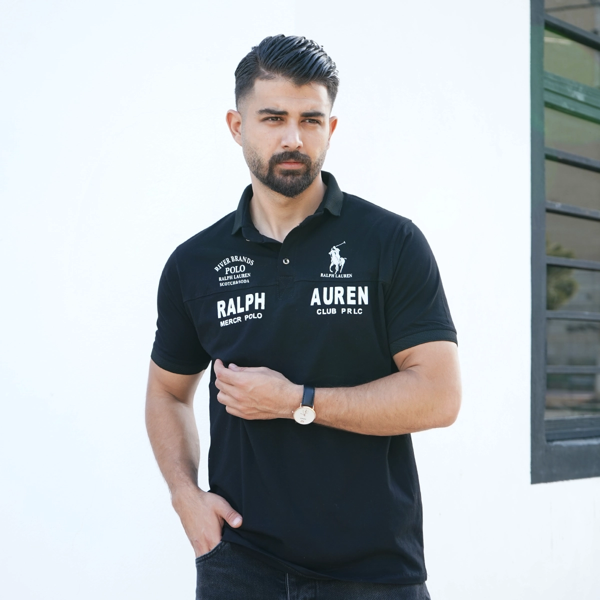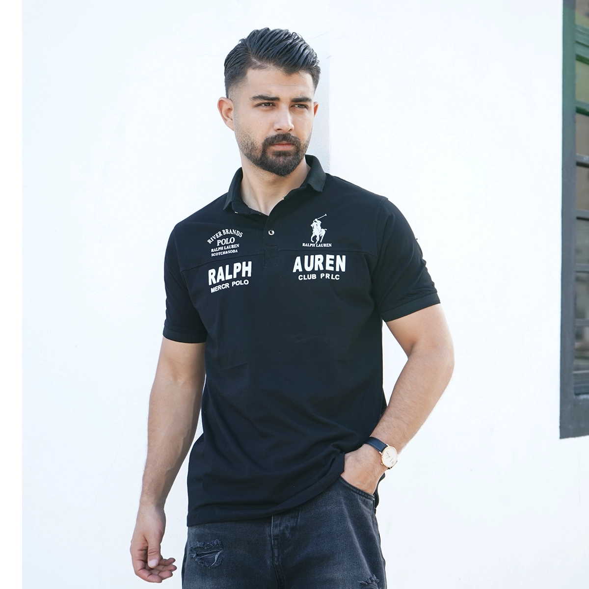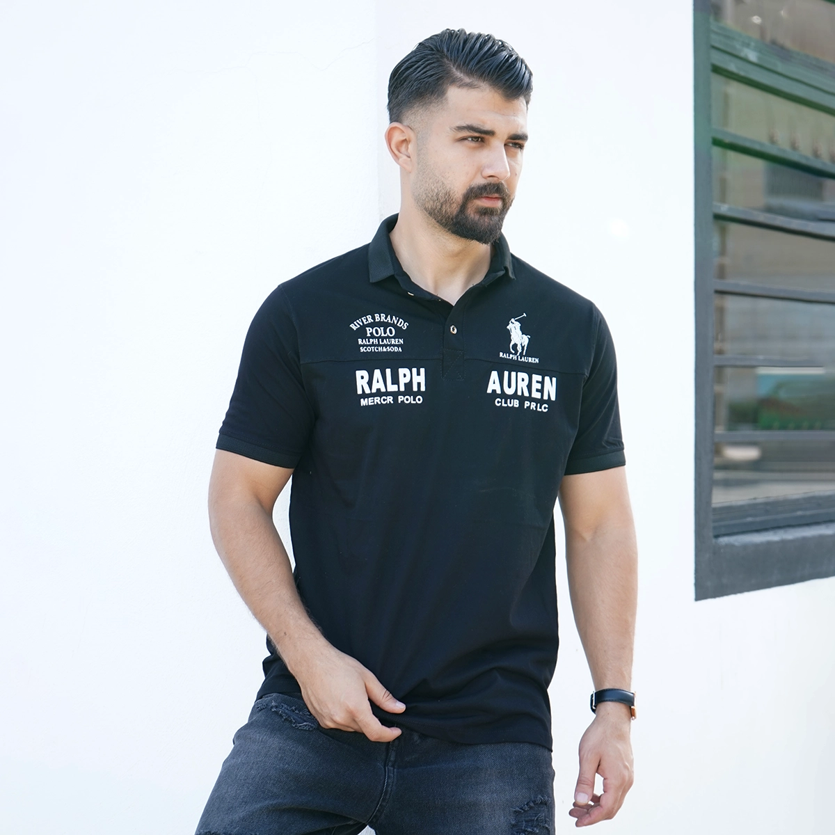 تیشرت یقه دار مشکی مردانه مدل Ralph
