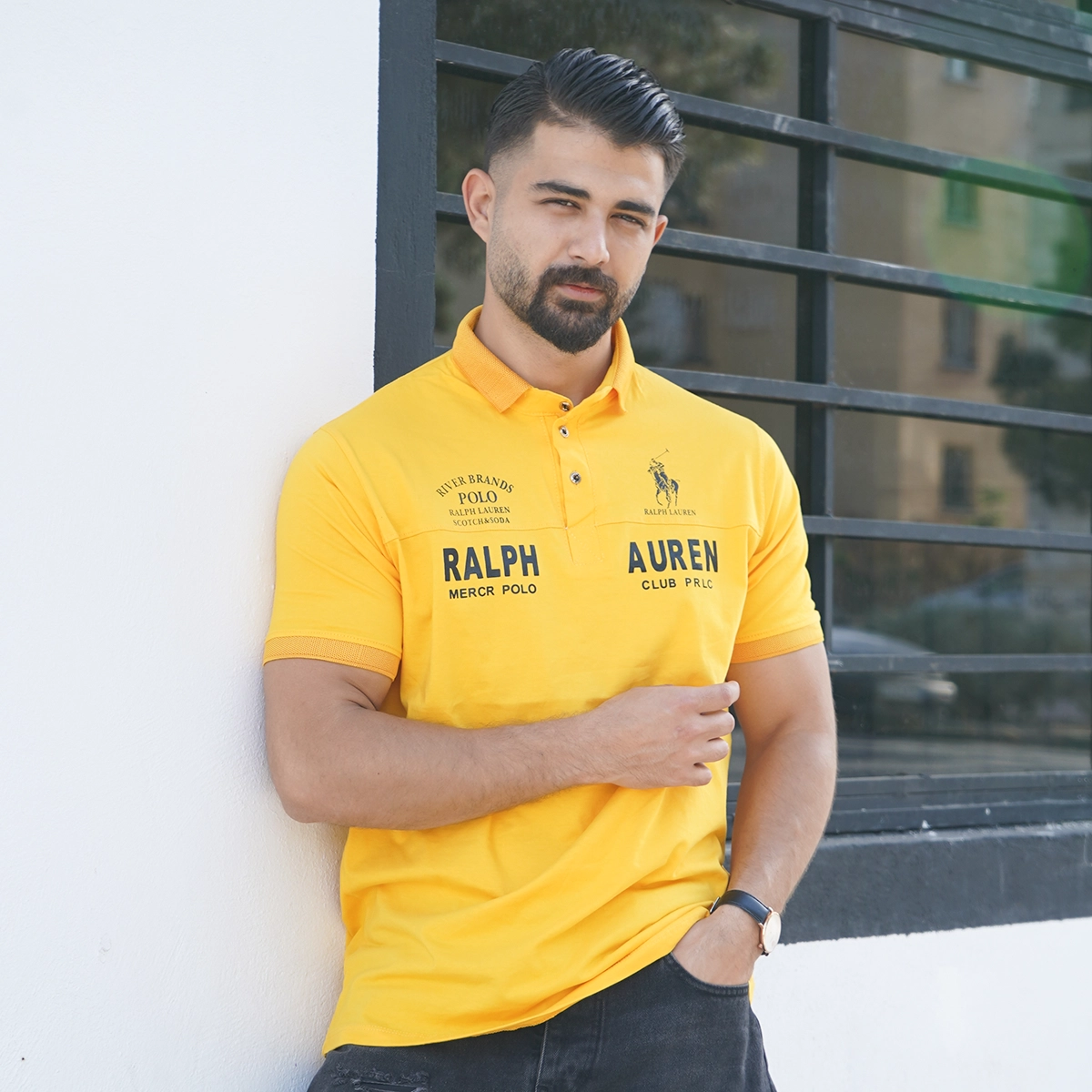 تیشرت یقه دار زرد مردانه مدل Ralph