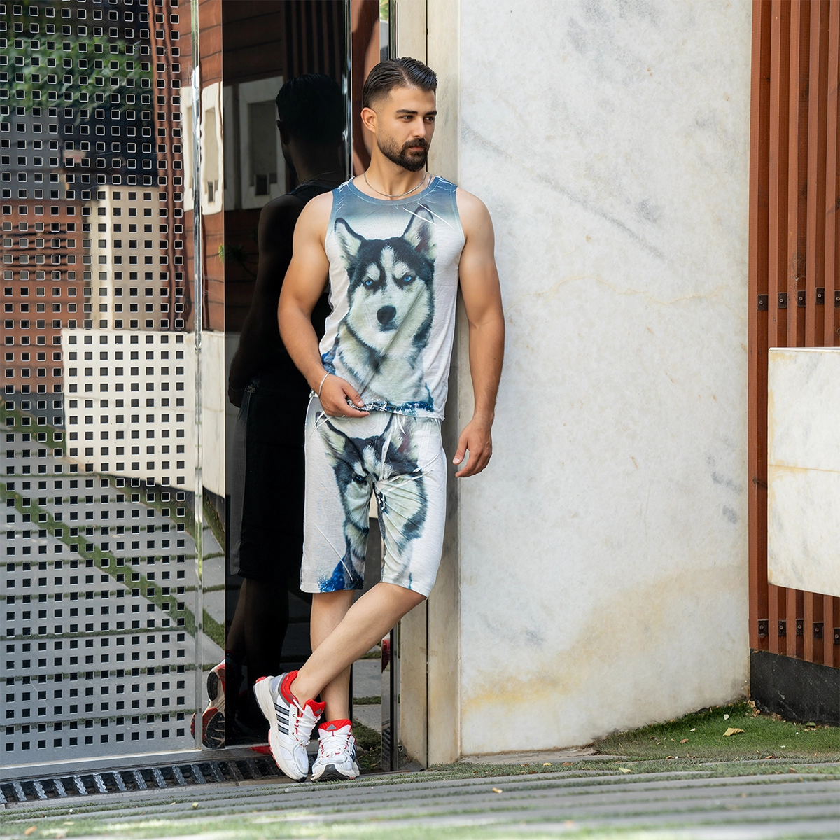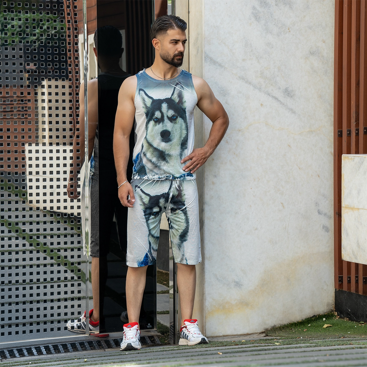 ست رکابی شلوارک مردانه طرح گرگ 2