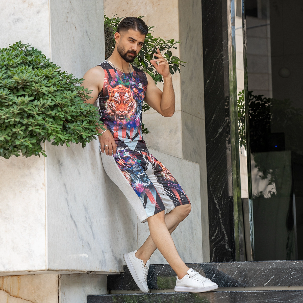 ست رکابی شلوارک مردانه Nike طرح ببر