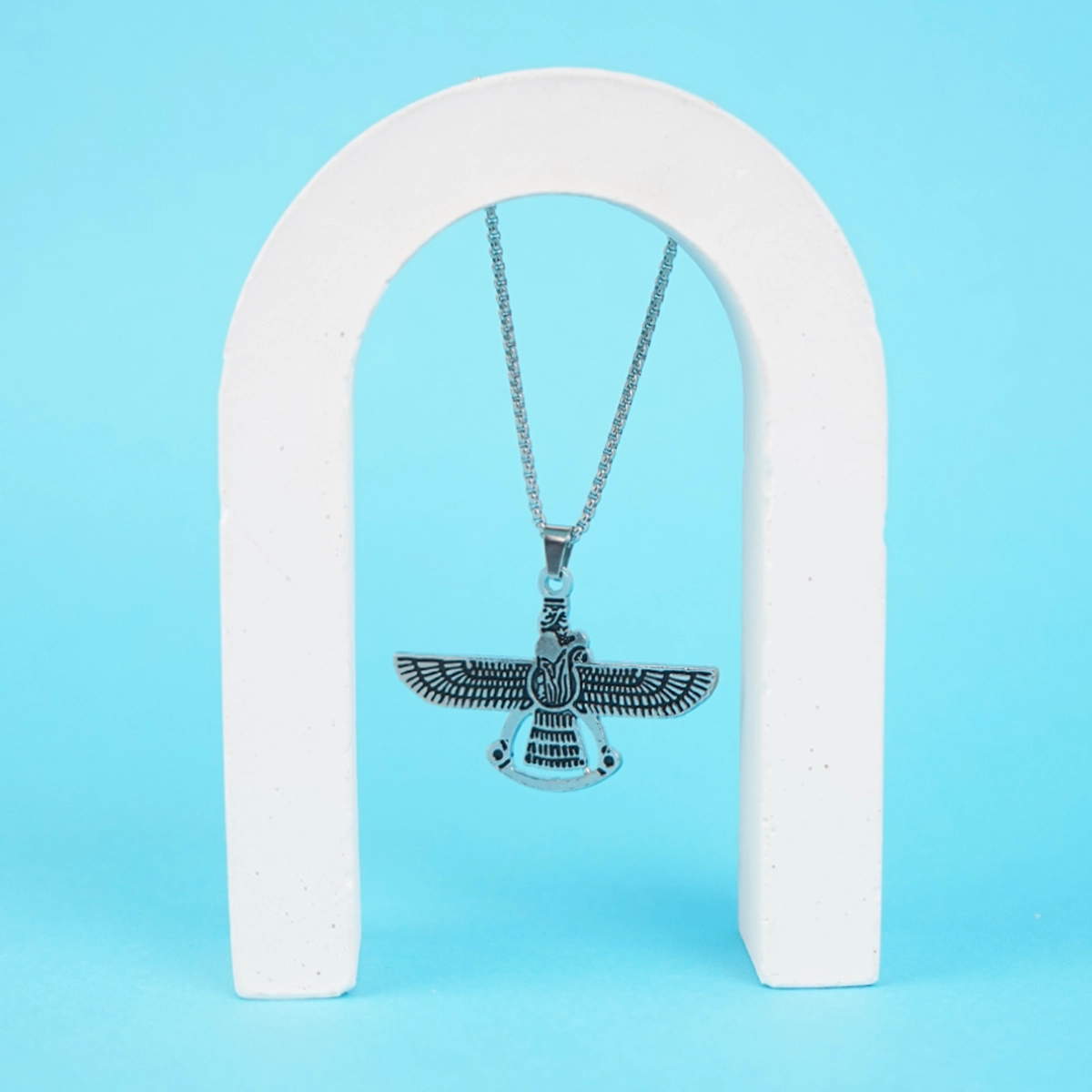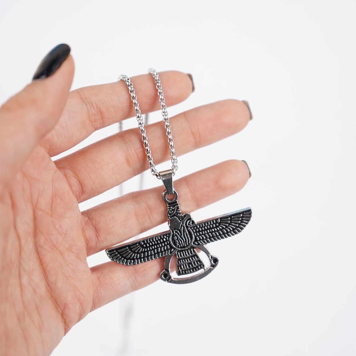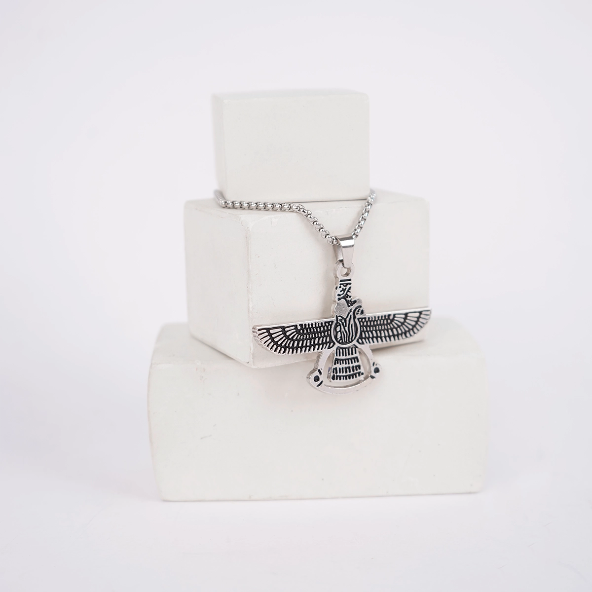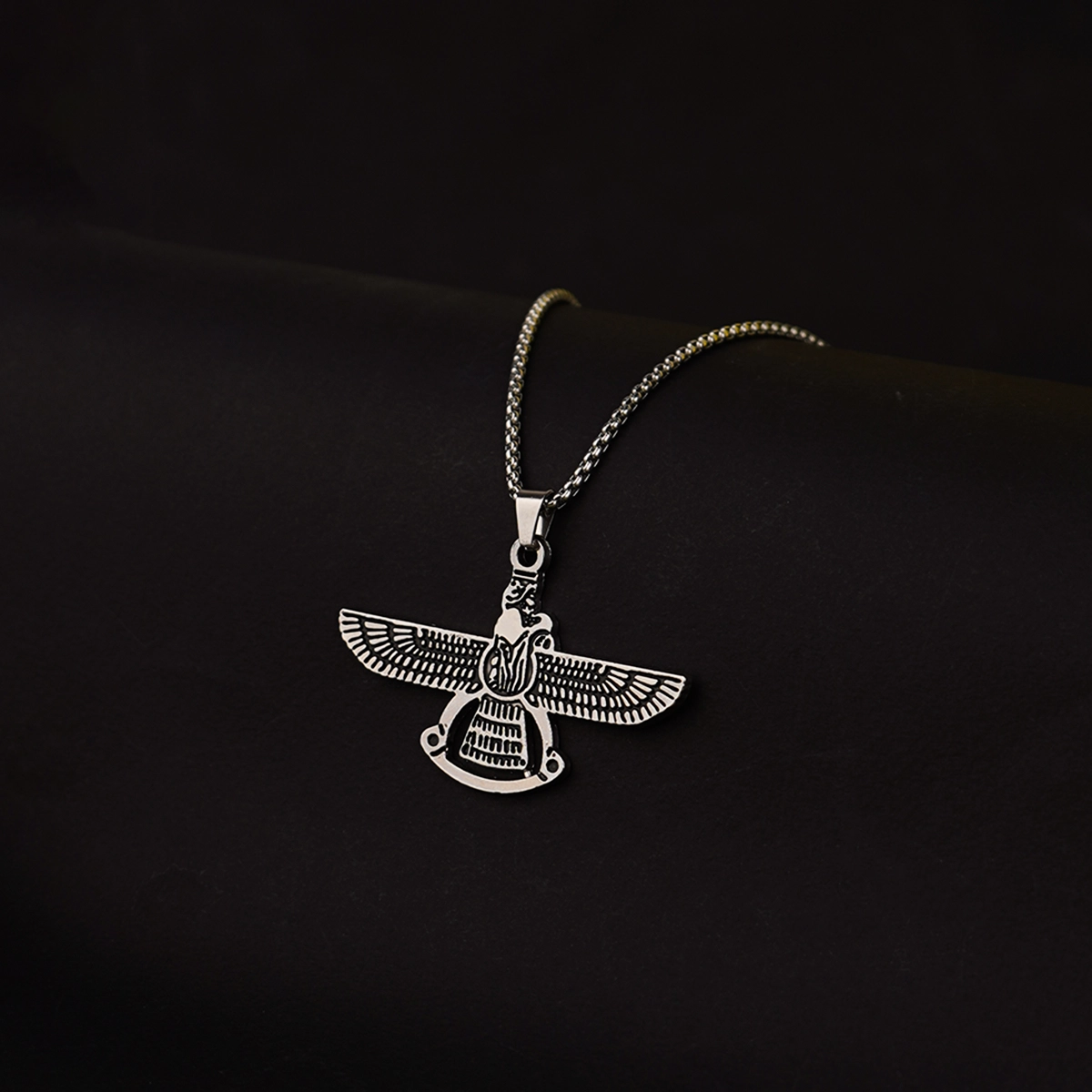گردنبند نقره ای با آویز فروهر