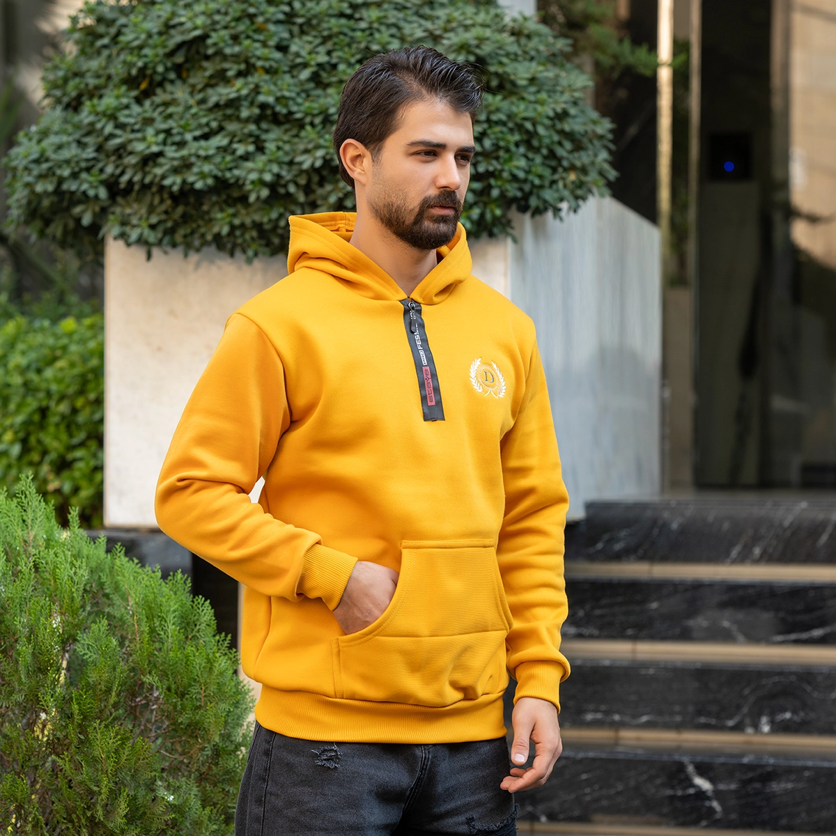 هودی مردانه طرح D خردلی مدل Parham