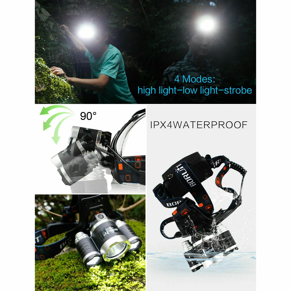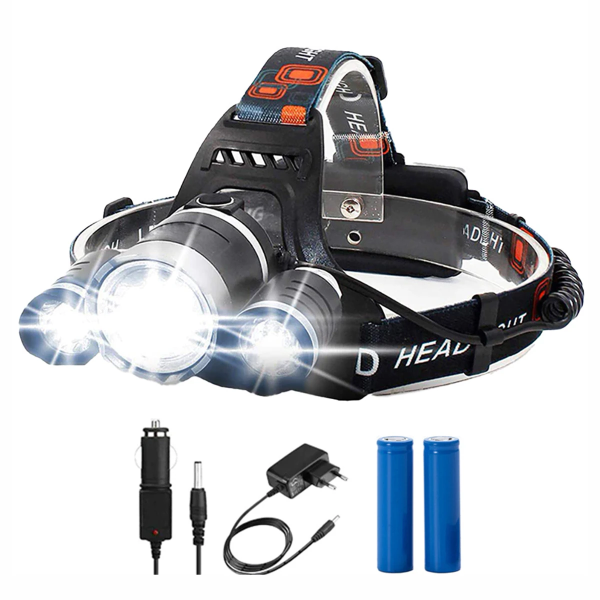 چراغ پیشانی زوم دار 3 لامپه مدل T6 مناسب برای روشنایی محیط بدون نیاز به نگه داشتن چراغ قوه است.