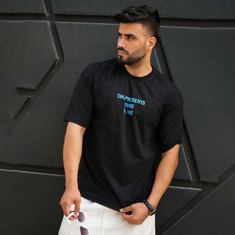 تیشرت مردانه مشکی مدل VIVRE LAVIE