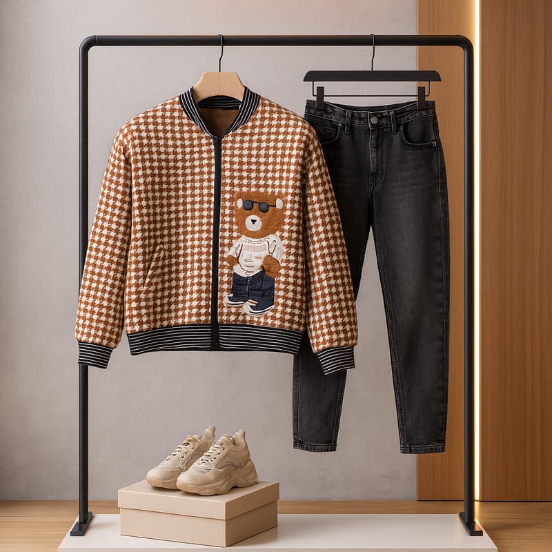بامبر زنانه طرح تدی سایز : فری سایز( مناسب سایز 36تا 46) جنس : پیچازی دارای : زیپ