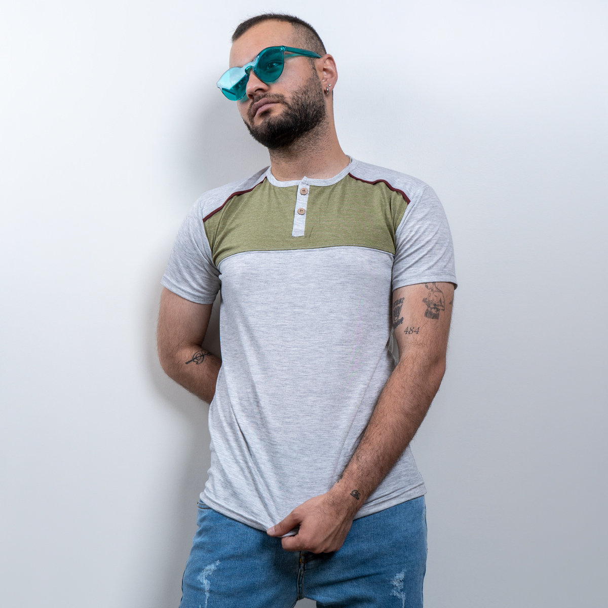 تيشرت مردانه طوسی روشن سبز مدل Ratim