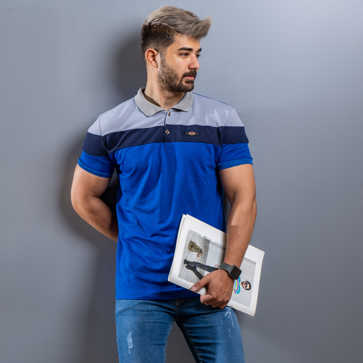 تیشرت Fashion مردانه طوسی آبی کاربنی مدل Garland